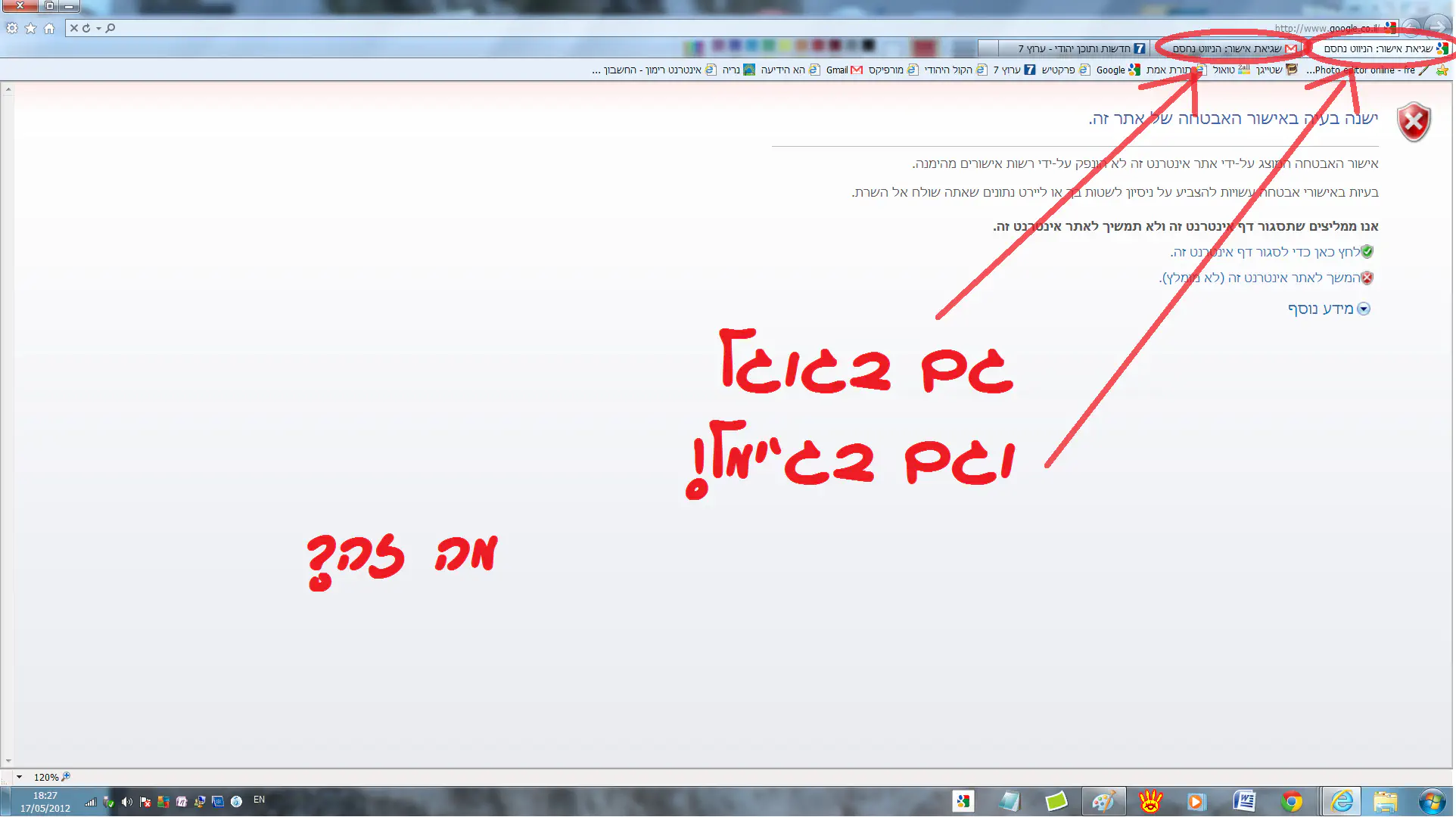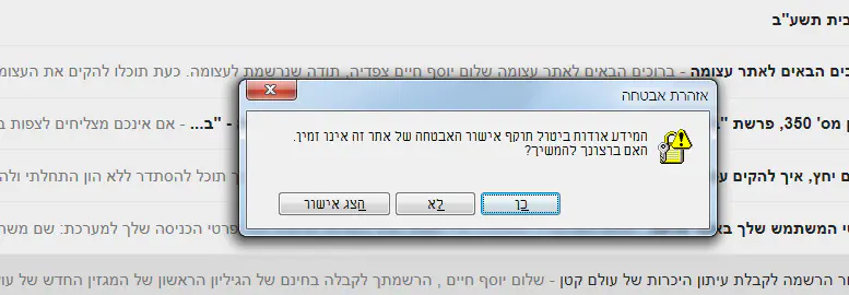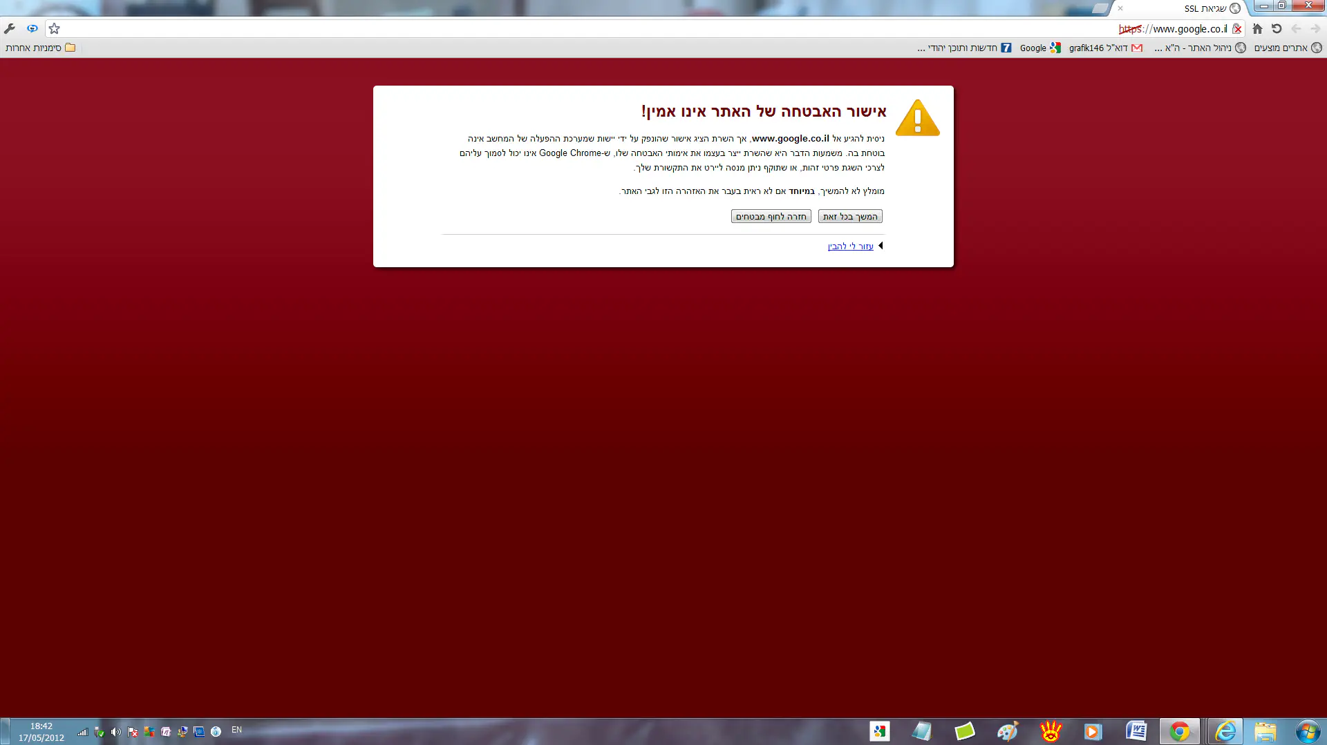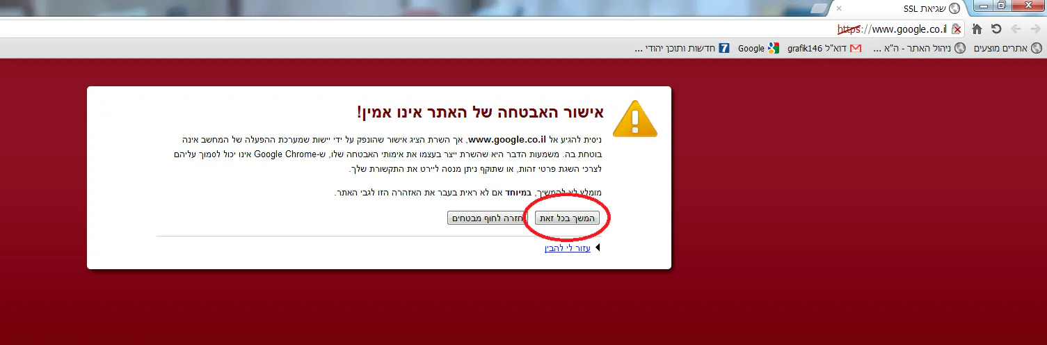 ניסיתי היום להכנס לגוגל וגם לג'ימל ואז קיבלתי הודעה שיש בעיה באישור אבטחה של אתר: