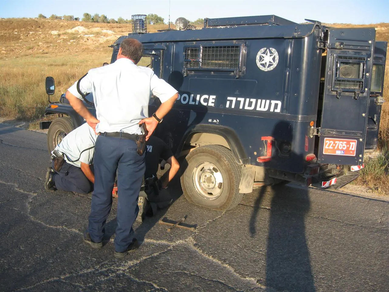 הנה תמונה של שוטר משתולל בצומת ג'ית בעלייה לחומש ביום העצמאות שנה שעברה: