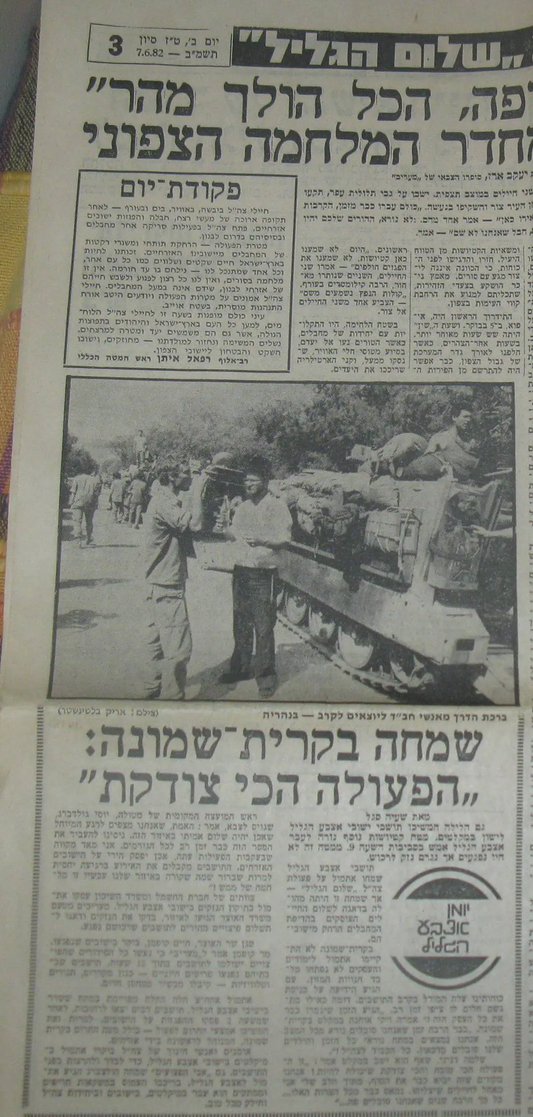פעילות חסידי חב"ד במלחמת לבנון לפני 30 שנהאתר זכרון ימית