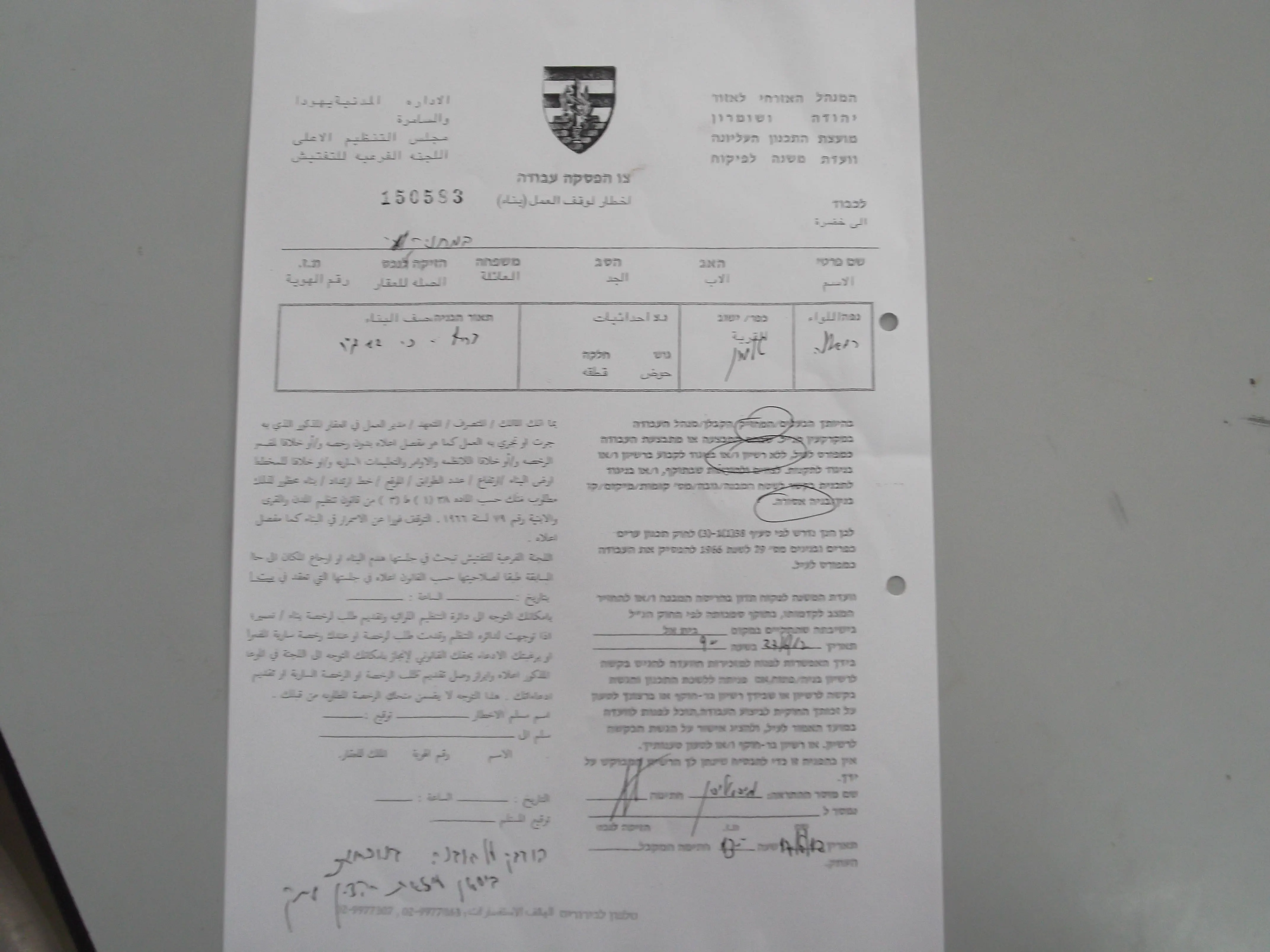 היום, יום ראשון (כ"ז סיוון) הגיעו כוחות מנהל אזרחי ותלו במקום צו הפסקת עבודה.