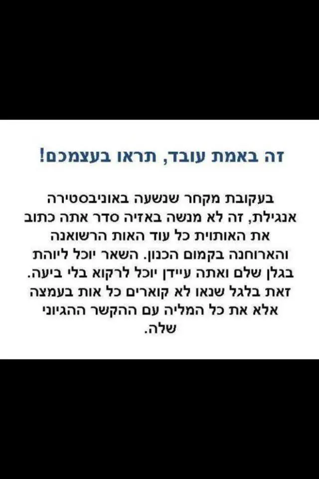 שהוא הראה משהו כזה למישהו, והוא לא קלט שהאותיות לא מסודרות. אז הוא אמר לו לקרוא שוב, ובפעם השלישית הוא התייאש ואמר לו שיקריא אות אות, ורק אז הוא תפס.