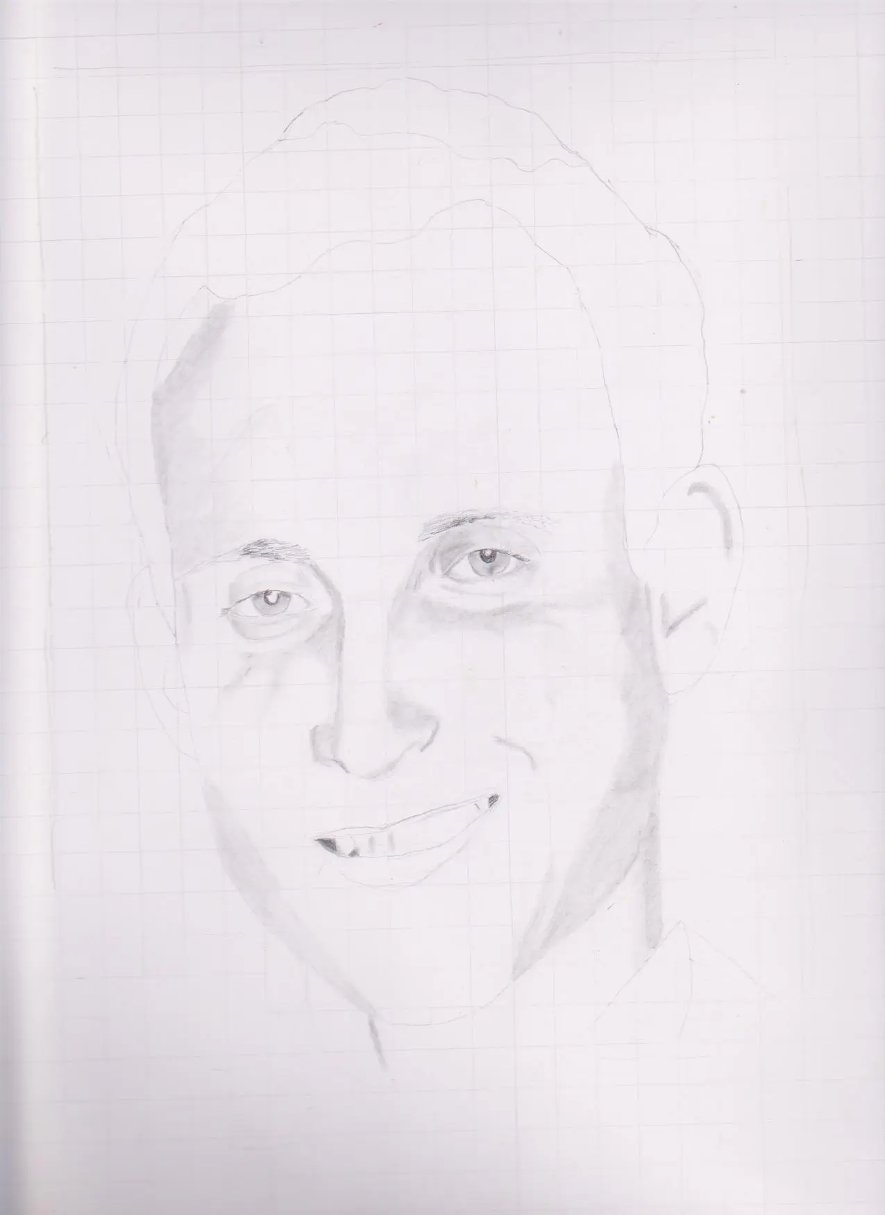 חשוב לי להדגיש, שאני לא "מיפה" אנשים בציור. אני מציירת מה שעיני רואות. הציור צויר על פי תמונה קטנה וישנה מהחתונה, והראש הוגדל עד לגודל דף הציור שלי, מה שיצר פנים נורא מטושטשות, שהקשו על מלאכת הציור.