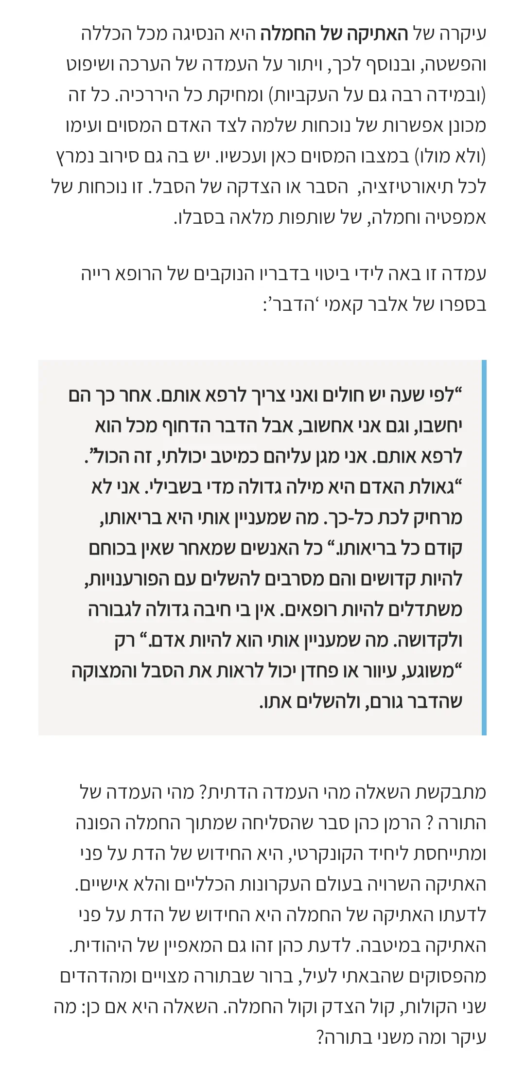 או את ההערצה לדור החלוצי הישן כאילו הם מלאכים ואנחנו בני אדם, או הם בני אדם ואנחנו כחמורים (ולא כחמורו של ז'בוטינסקי).