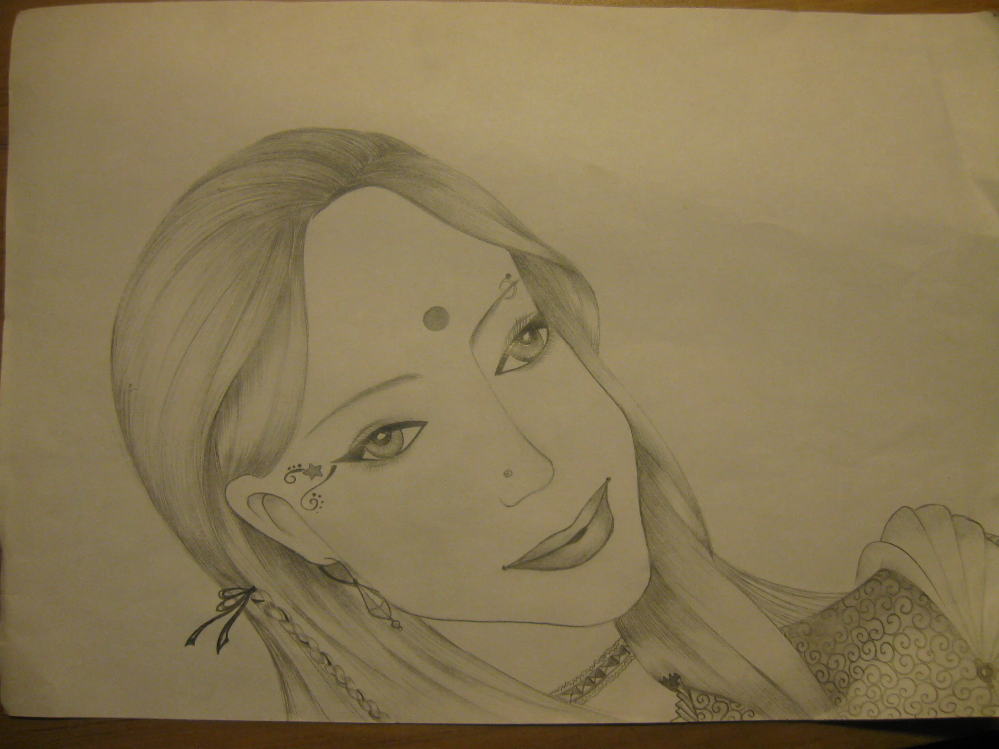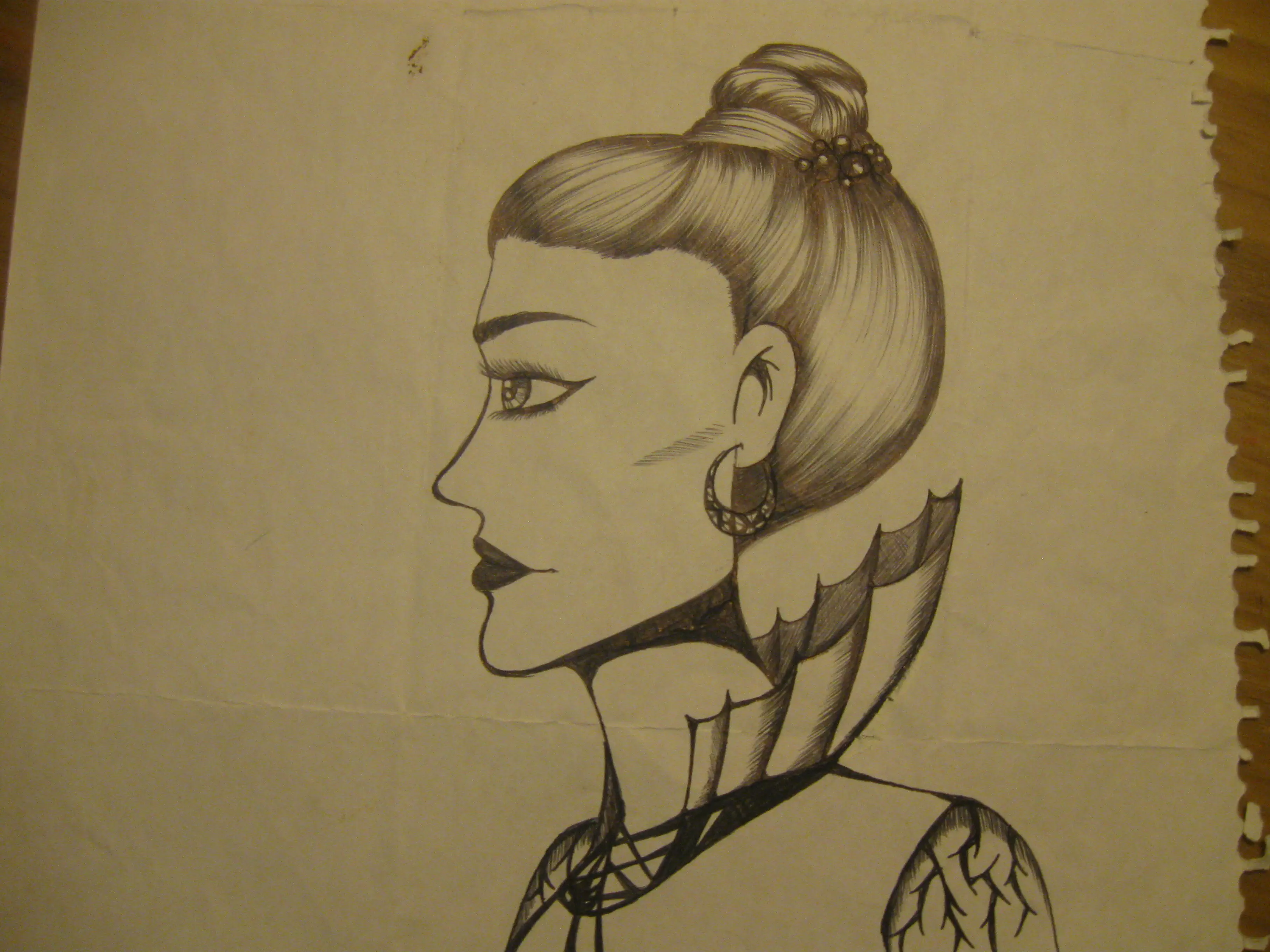 הציור השני- לא פספסת אף פרט! נראה כאילו ציירת שערה שערה בשיער, כל קבוצת שיער קבלה יחס מיוחד. ההצללה בבד הבגד, החוט ששזור בצמה הדקיקה, האור המשחק בעגיל, הברק בנזם באף...