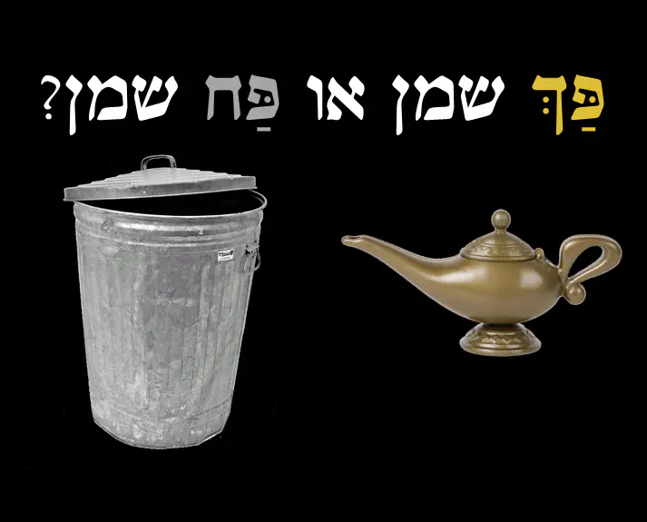 בהקשר של חג החנוכה נכון לדבר על פך השמן. בתיאור הנס בתלמוד נאמר: "שכשנכנסו יוונים להיכל טִמאו כל השמנים שבהיכל. וכשגברה מלכות בית חשמונאי ונִצחום, בדקו ולא מצאו אלא פך אחד שהיה מונח בחותמו של כהן גדול ולא היה בו אלא להדליק יום אחד. נעשה נס והדליקו ממנו שמונה ימים..." (בבלי שבת כא ע"ב).