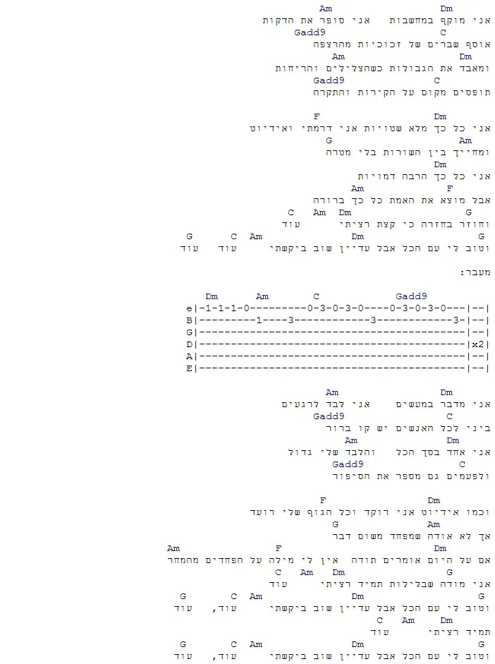 "עוד" של נתן גושן,אני צריכה גירסה די קלה ושיהיה עם המילים לא רק האקורדים....תודה