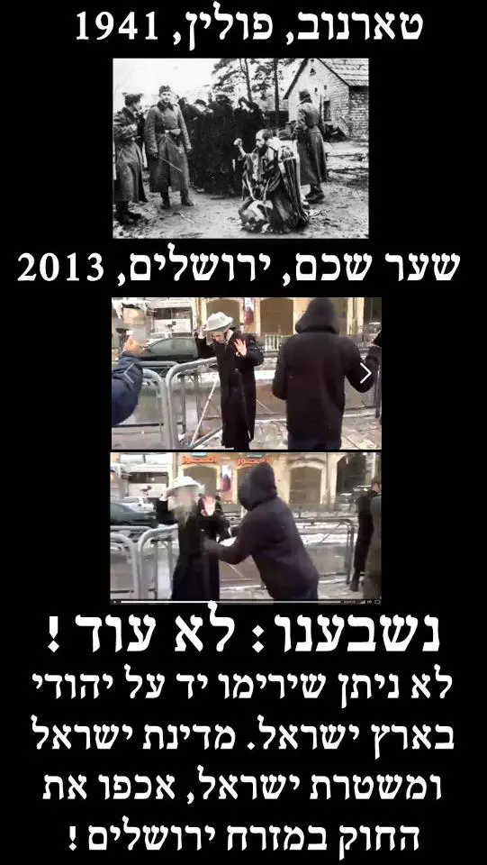 מעלים נקודה מצערת.. שלא רק הערבים דומים לנאצים בתמונה למעלה.. אלא שיש גם יותר מידי דמיון בארשת הכנועה של הנתקפים... (בסוף תשאלי את המותקף עצמו והוא יאמר:"אסור להתגרות בגויים..." לא מביאים כאן ראיה למשהו... זה הגיוני ,וגם המותקפים יודו בזה.)