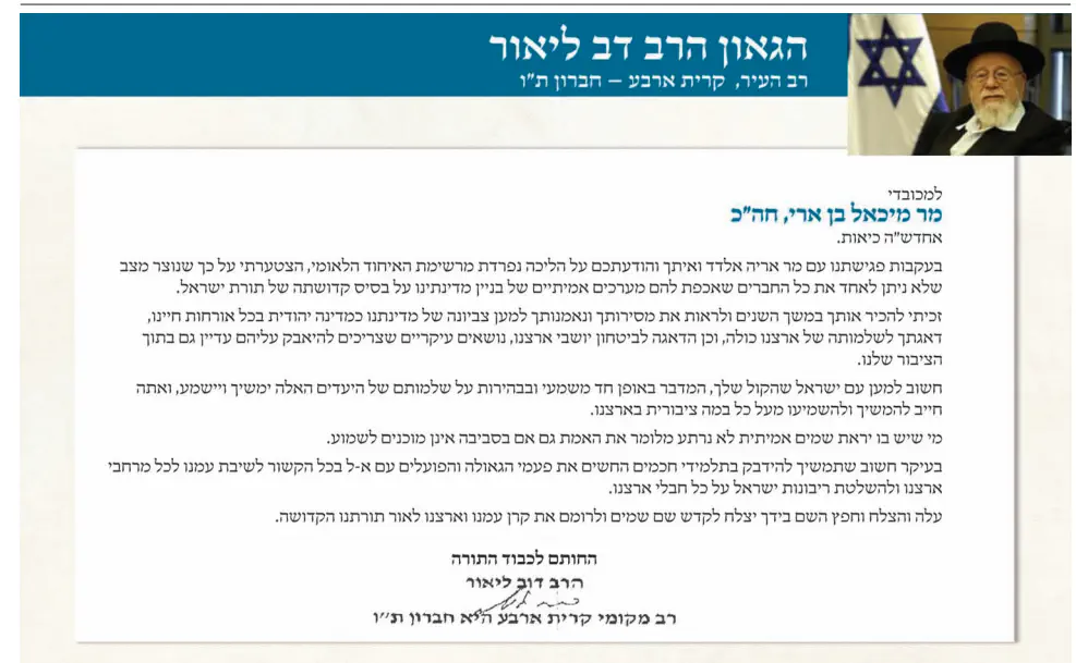 כמו כן זאת המלצתו של הרב להצביע לבן ארי: