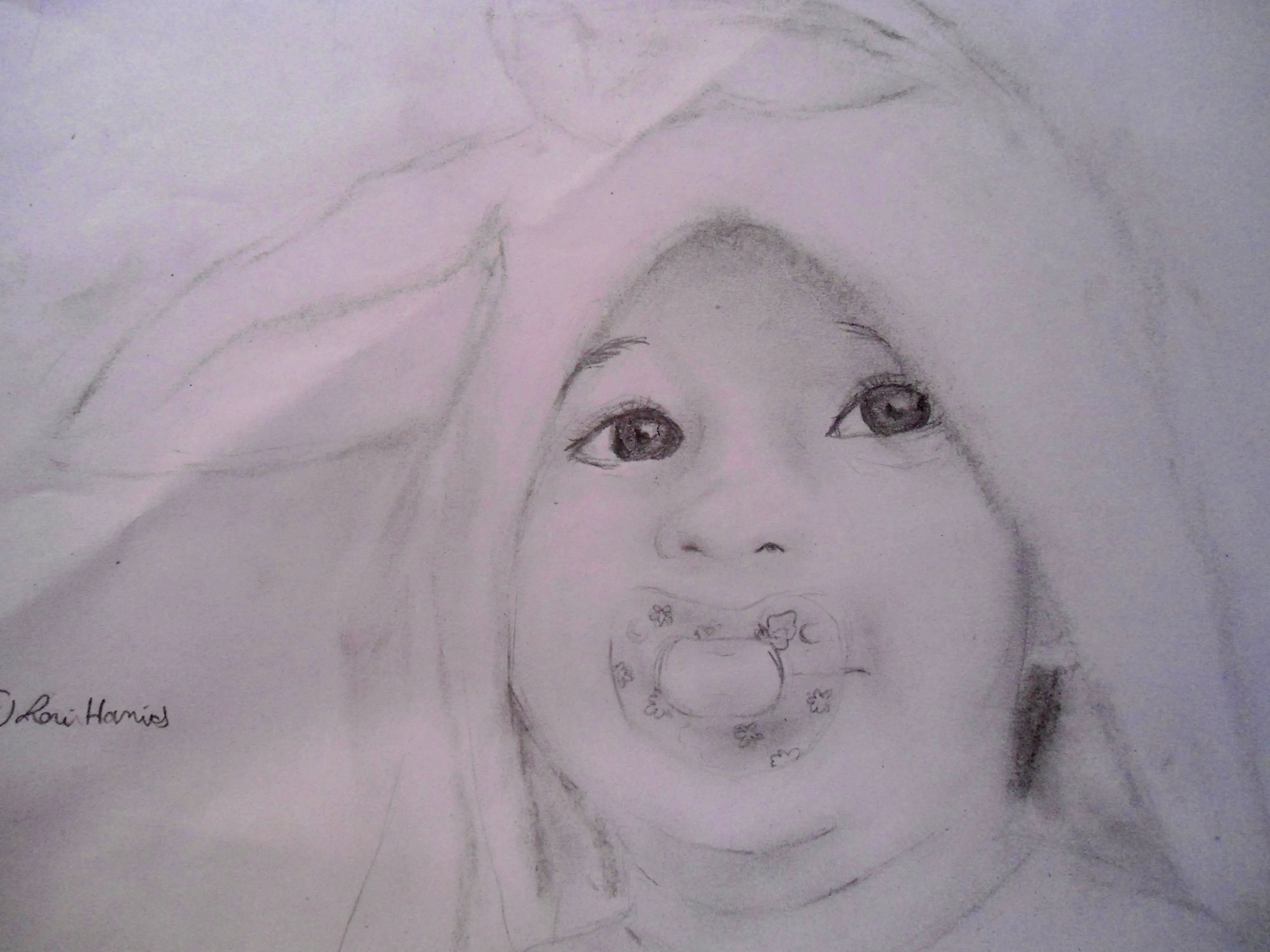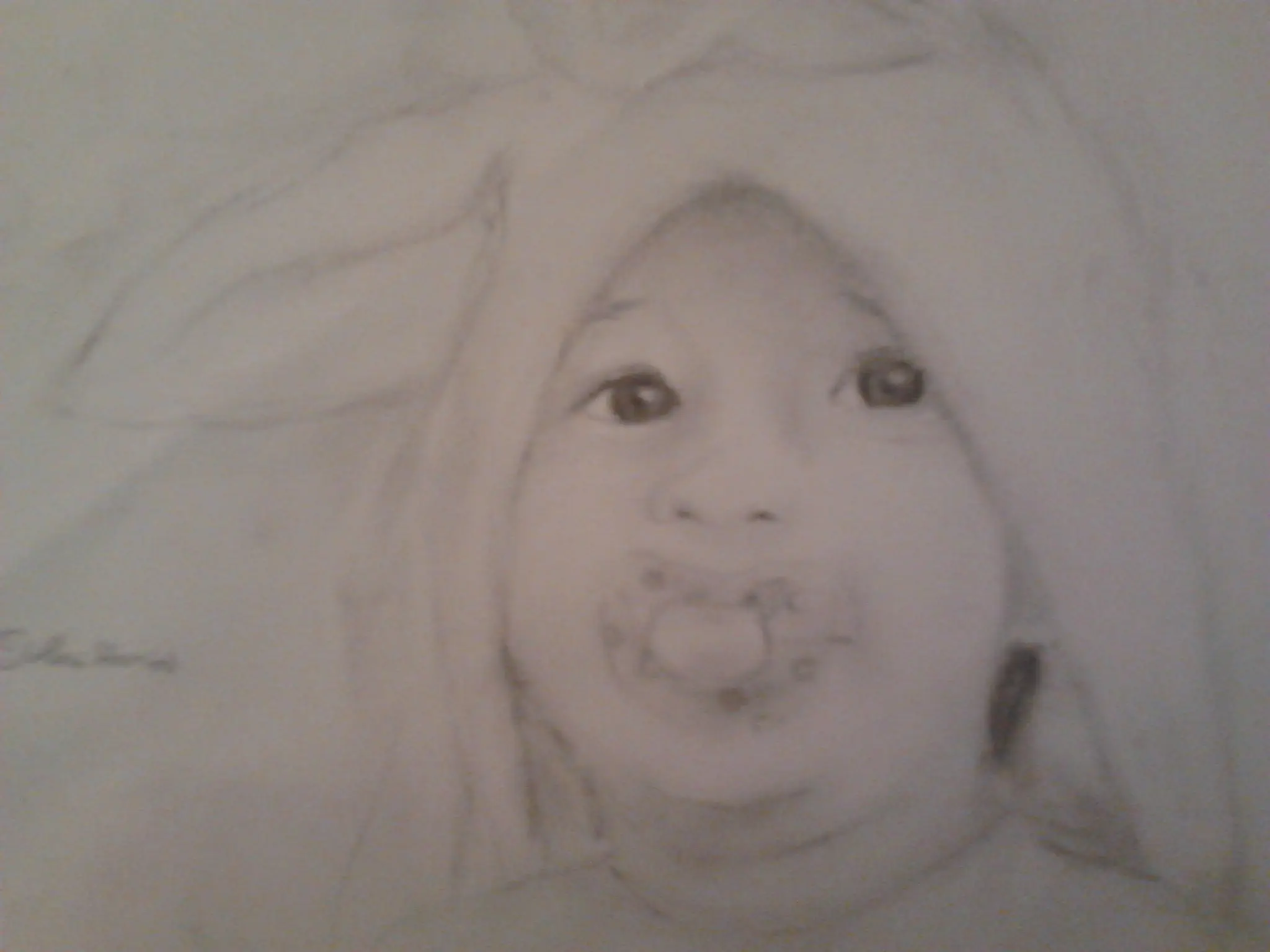 למשל, בצד שמאל של התחפושת, לצד הפנים של התינוק- שם הייתי מוסיפה קו תחימה, לא חזק מדי, ולצדו מצלילה ומעניקה צבע עם העיפרון, ככה שזה לא יראה כאילו תחמת בקו, אבל גם לא משאירה "אוורירי" כ"כ.