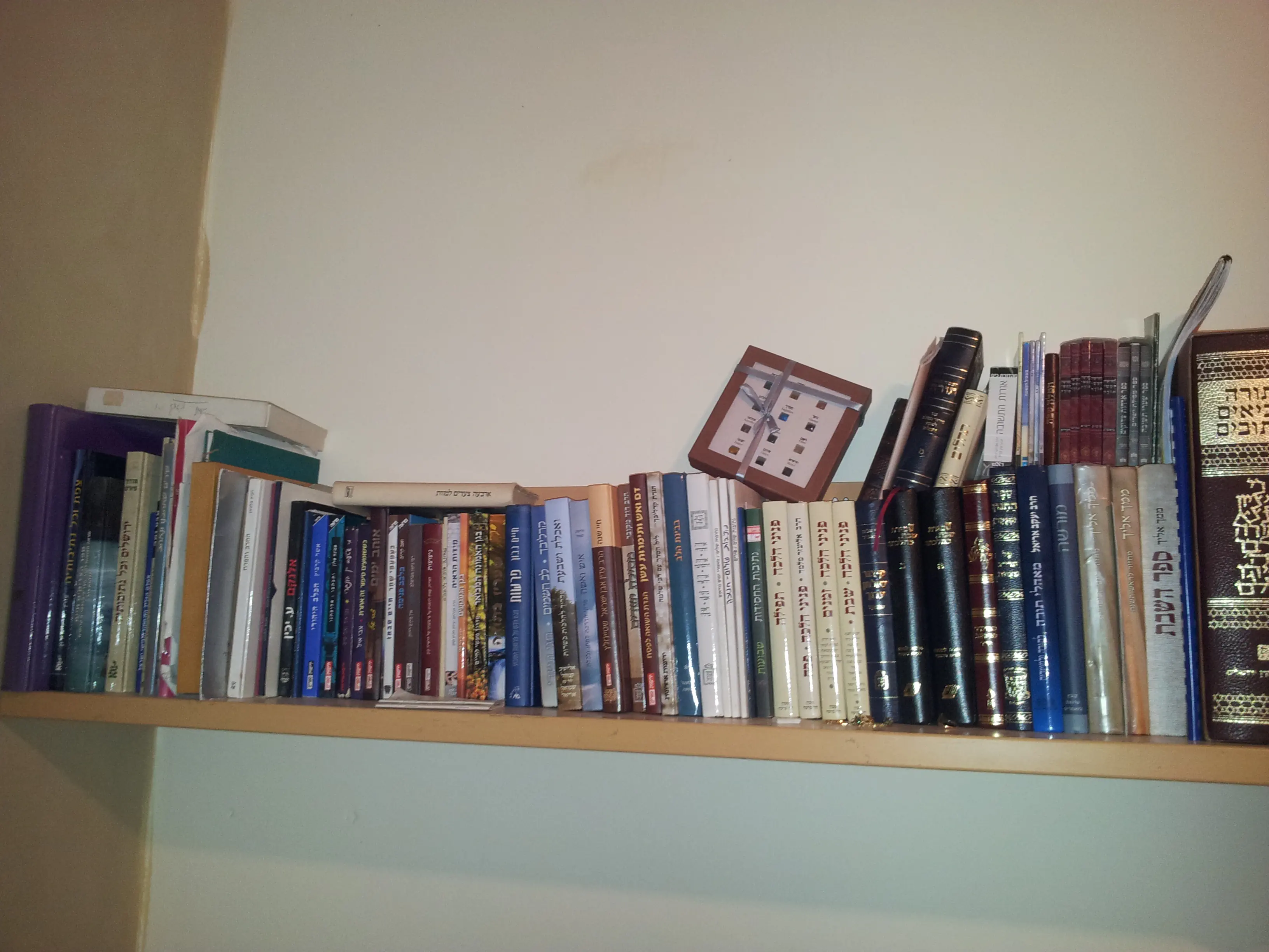 במדפים הספציפיים שלי בחדר שלנו יש כל מיני דברים, אבל מבחינת ספרים יש בעיקר או רק ספרי עיון..