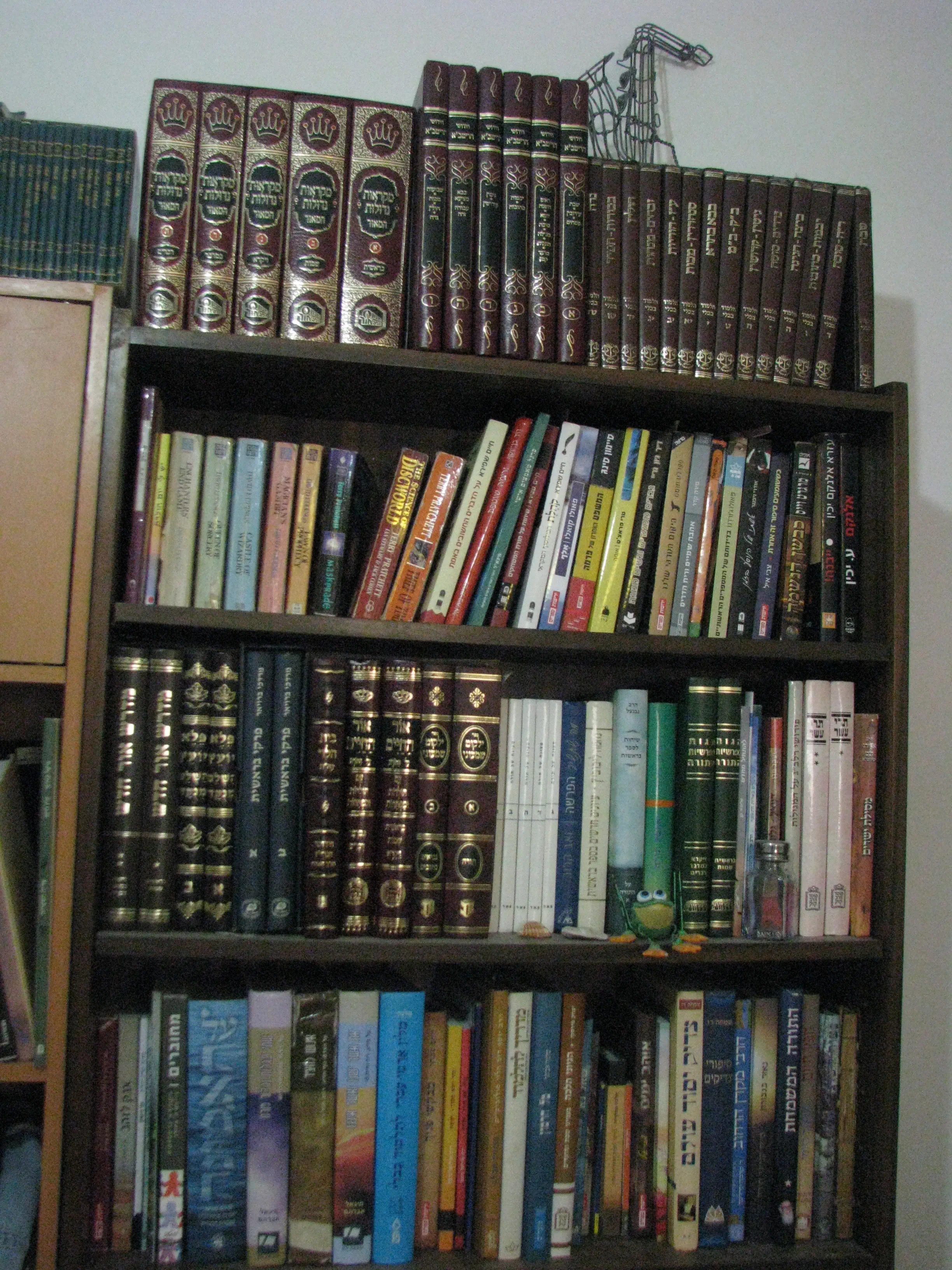 דווקא אצלנו בסלון יש בעיקר רק ספרי קודש/עיון/היסטוריים. למעשה, כשאני חושב על זה, יש שם ספר קריאה אחד בלבד. מוזר