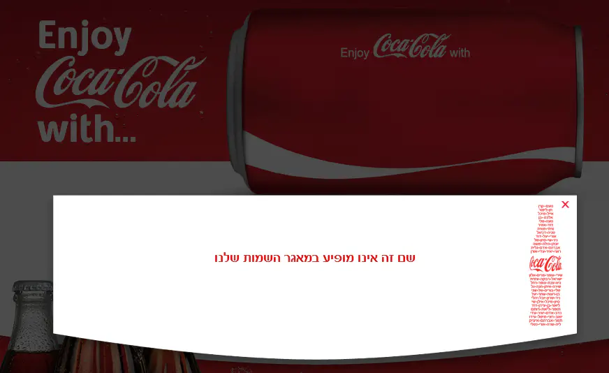 חברת קוקה-קולה ישראל יוצאת בפעילות יצירתית עבור צרכניה ובשבועות הקרובים יופיעו עשרות השמות הפרטיים הפופולאריים ביותר בישראל על גבי המוצרים של שלושת מותגי משפחת קוקה-קולה: Diet Coke, Coca-Cola ו- Coca-Cola Zero.