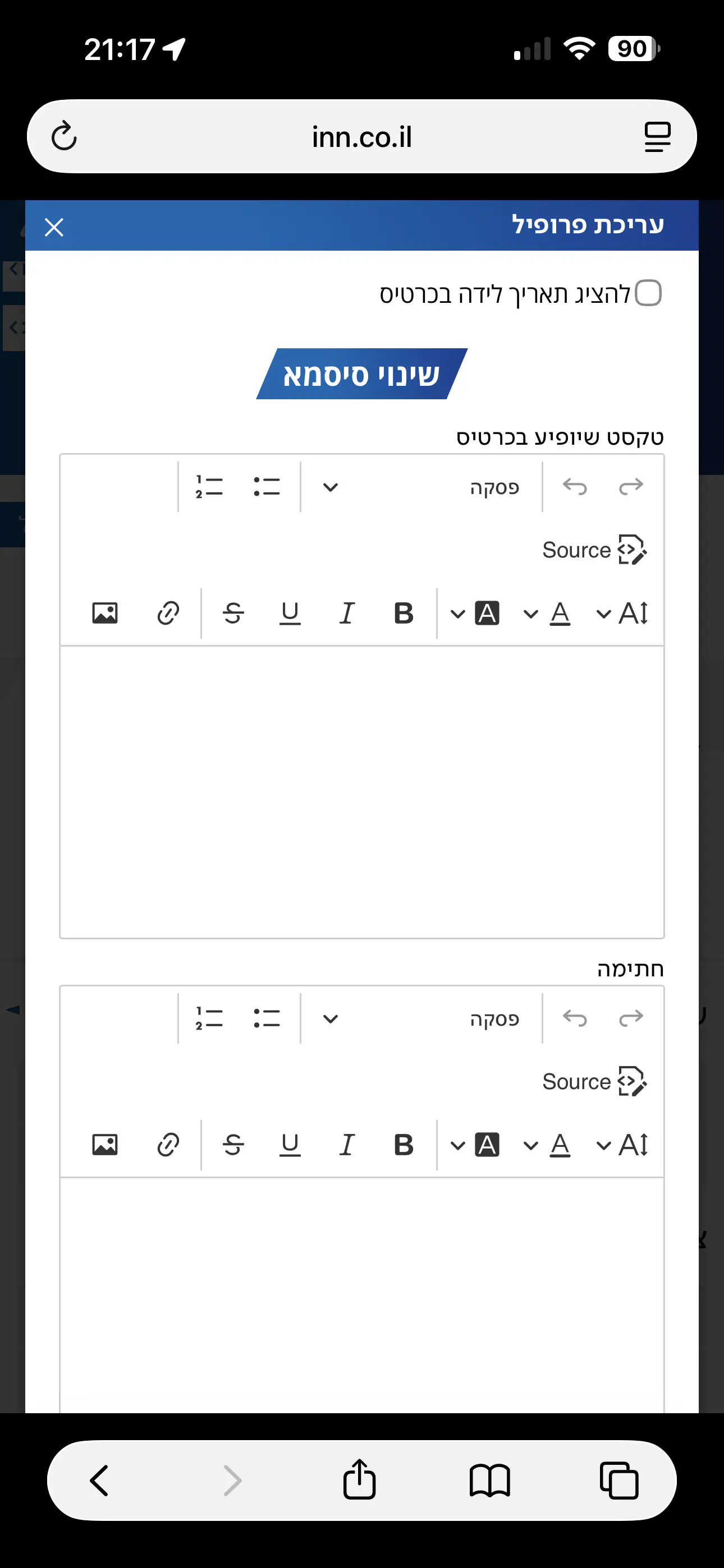 נכנסת לכרטיס שלי, עריכת פרופיל, שינוי סיסמהפ.א.