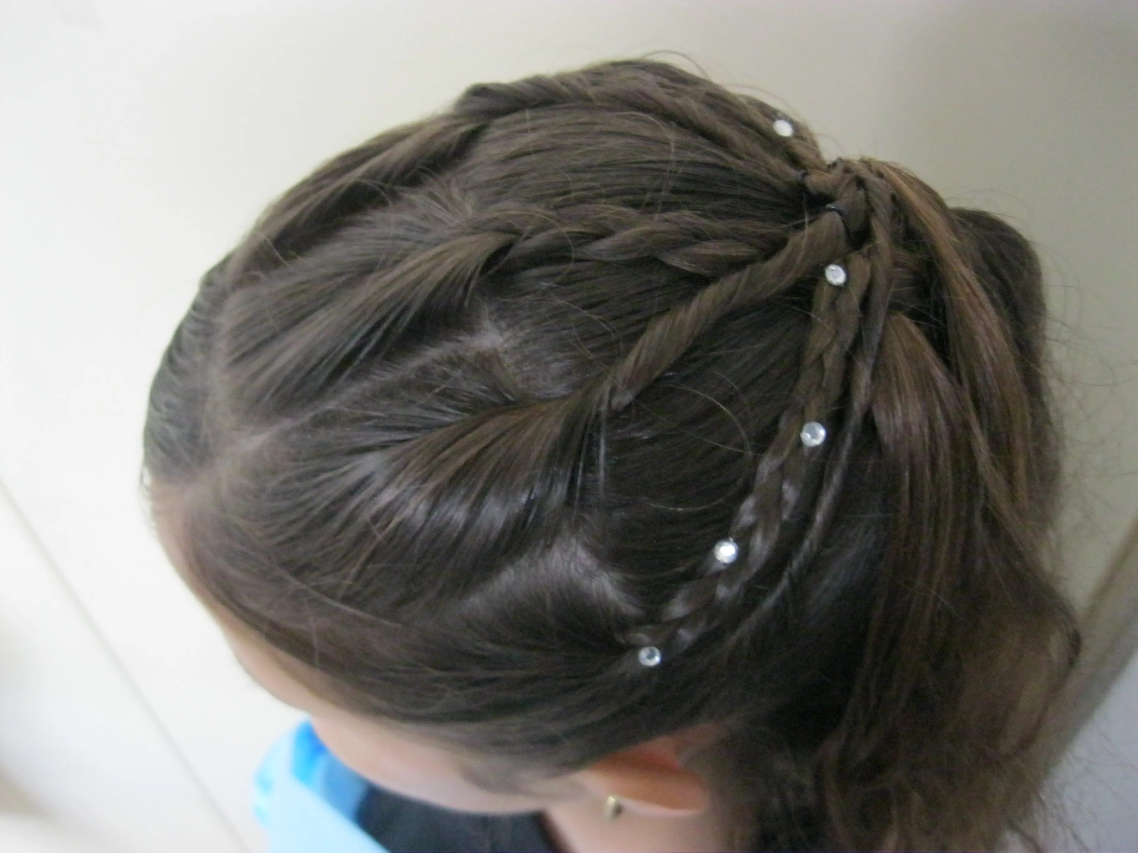 הראשונה עם הצמות - מחלקים את השיער למקדימה ומאחורה - עושים קשת כזאת מאוזן לאוזן,