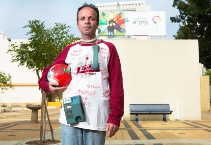 מנשה יוזפוביץ', חמוש בטלפון ובכדורגל, בבית ספר פיק"א בפתח תקווה. "פעם אפילו הודעתי שאני פורש, אבל אני לא מסוגל להפסיק"