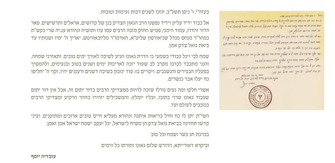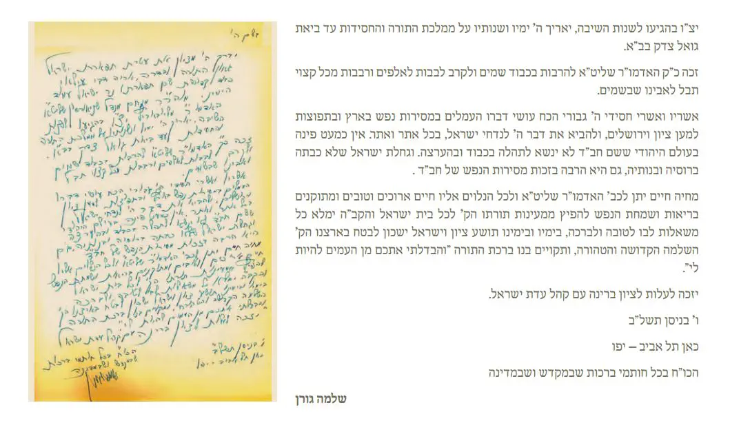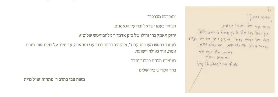 האדמו"ר מלובביץ׳ (חב"ד) לנתניהו -