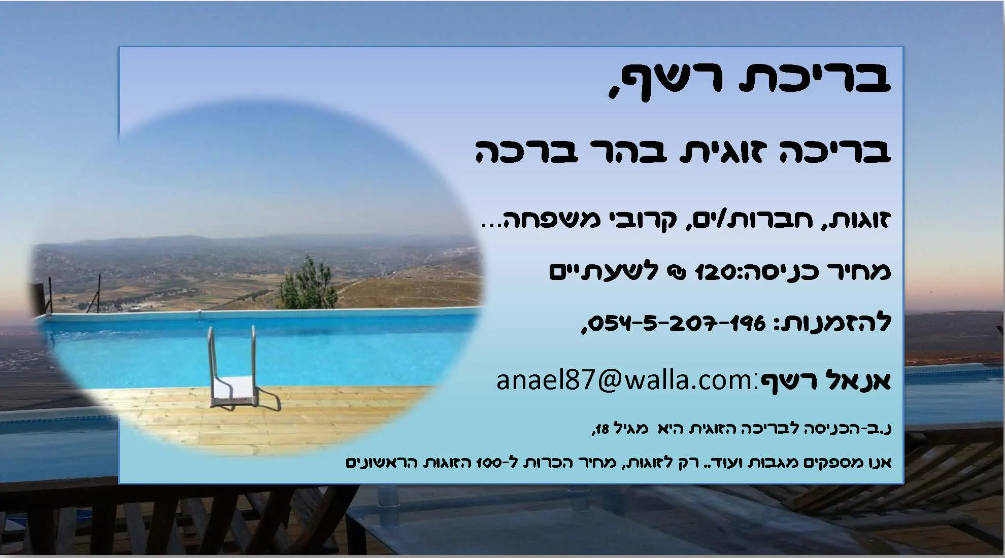 חדש! בריכה זוגית לזוגות, בהר ברכהyodfate