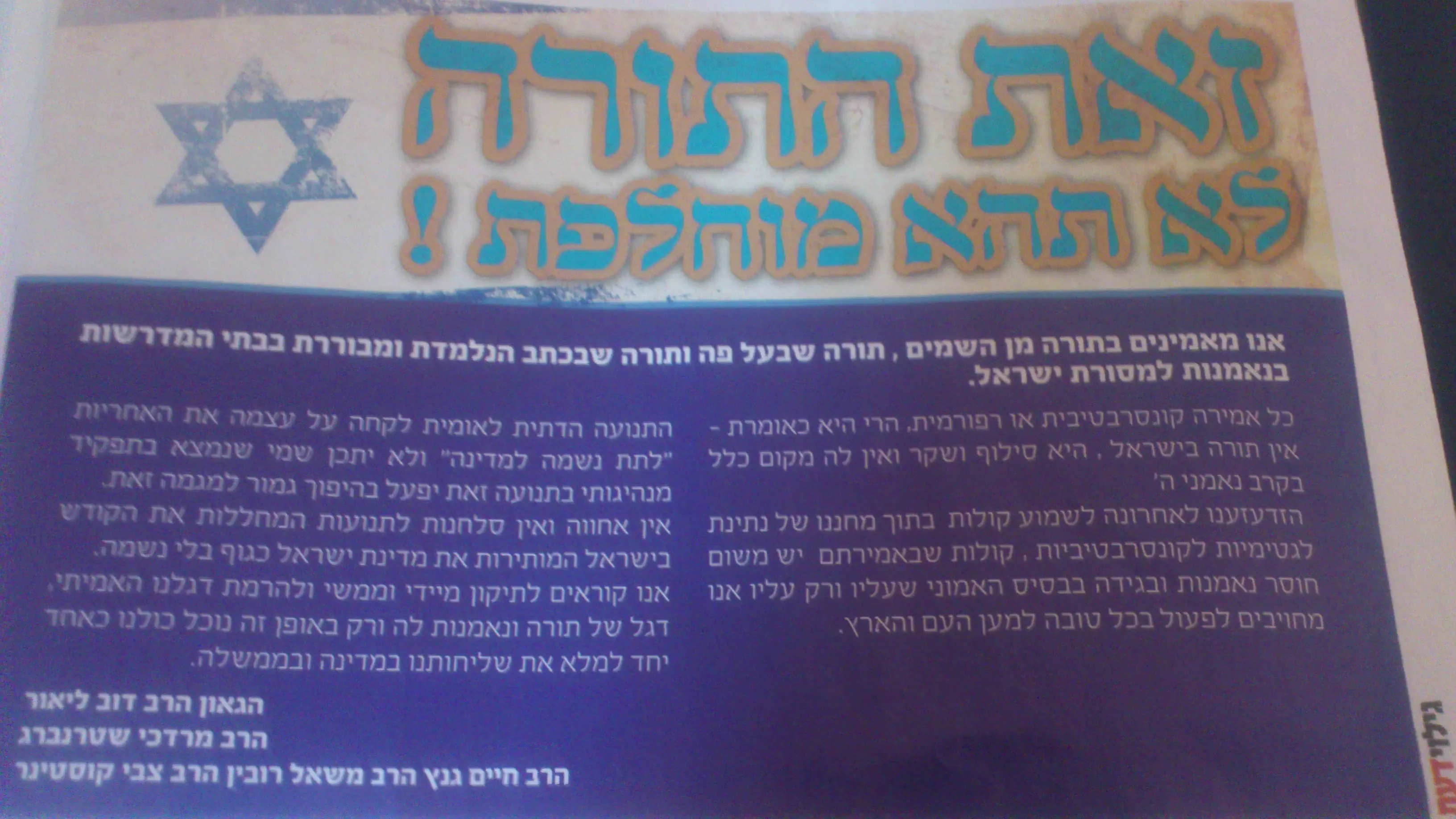עוד אמר בנט כי "אני אורתודוקס. גדלתי בציונות הדתית. אבל אני לא השר של המגזר. אני מתכוון לשרת את כל עם ישראל".