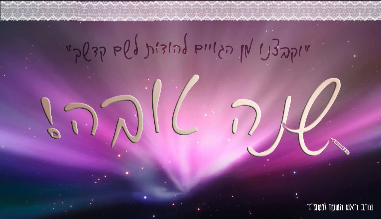 איך עשיתי בסופו של דבר: בחרתי תמונות של דברים מהשנה האחרונה וסידרתי ב2 שורות לאחר מכן בחרתי את צורת הגל הכפלתי אותה 3 פעמים שלכל אחד מה נתתי צבע אחר ואת הגל האחרון צבעתי עד למטה באפור לאחר מכן לקחתי ריבוע ירוק ושמתי שולים מחושפשים (שכחתי איך קוראים לזה) העתקתי נדבקתי חתכתי כך שיתאים לריבוע הרקע האפור הפך את זה לבהיר יותר את הפרחים לקחתי מגוגל תמונות.... ולכיתוב הוספתי הצללה והתאמתי לפי רצוני
