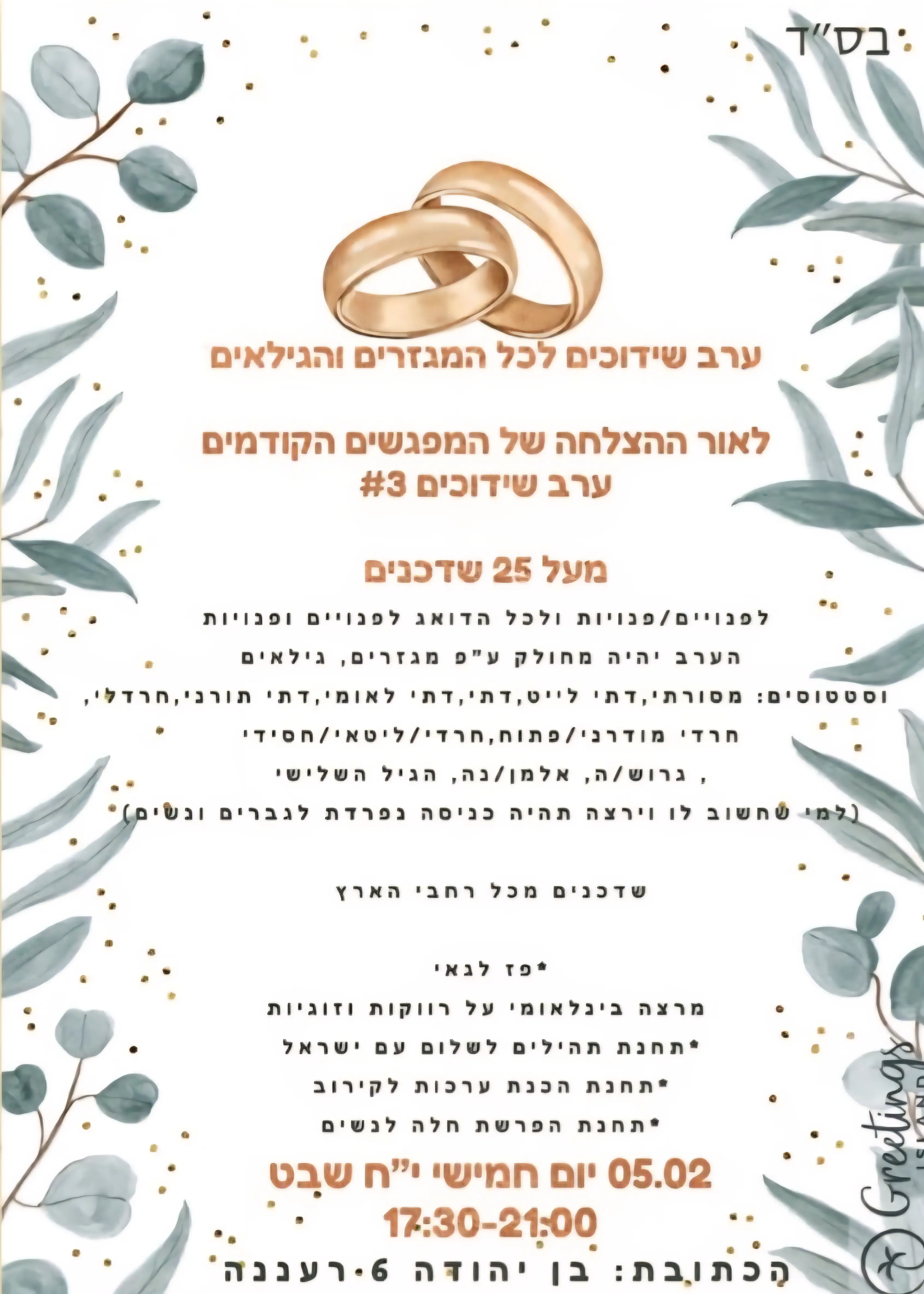 ויצא לי להיות בקשר עם שדכנים ורובם הגדול היו נעימים ורוצים לעזור. זה באמת עבודת קודש. וחבל לשלול את הכיוון הזה.