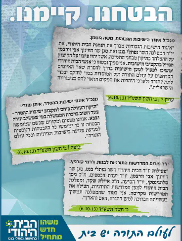 בתקופה הקרובה צפוי לעבור תקציב נוסף, שיוביל לכך שתקציב הישיבות הציוניות לא ייפגע לעומת השנה שעברה.