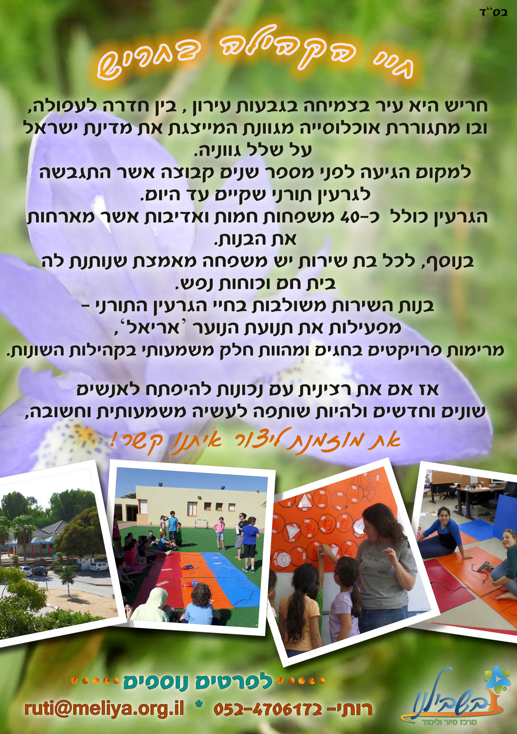 אז בואי תראי, תתרשמי, תאהבי, ואולי תהיי חלק מהעשייה הברוכה והקדושה ותצטרפי למשפחה! כבר עכשיו ממש!