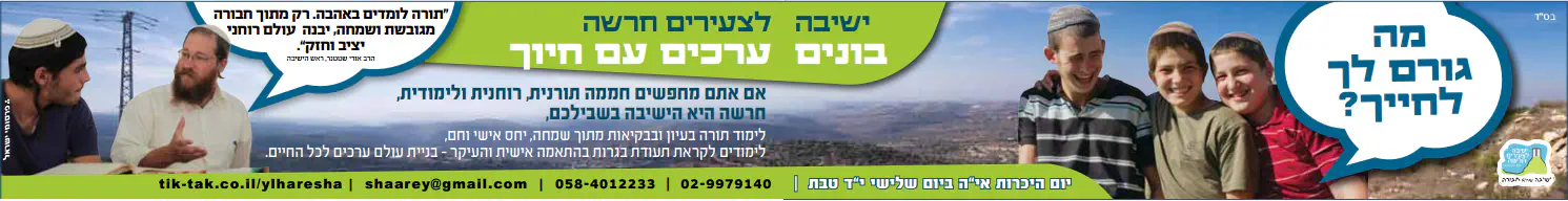 לכתבה על שמירת נגיעה לנוער דתי לעולם קטן (השבועון)