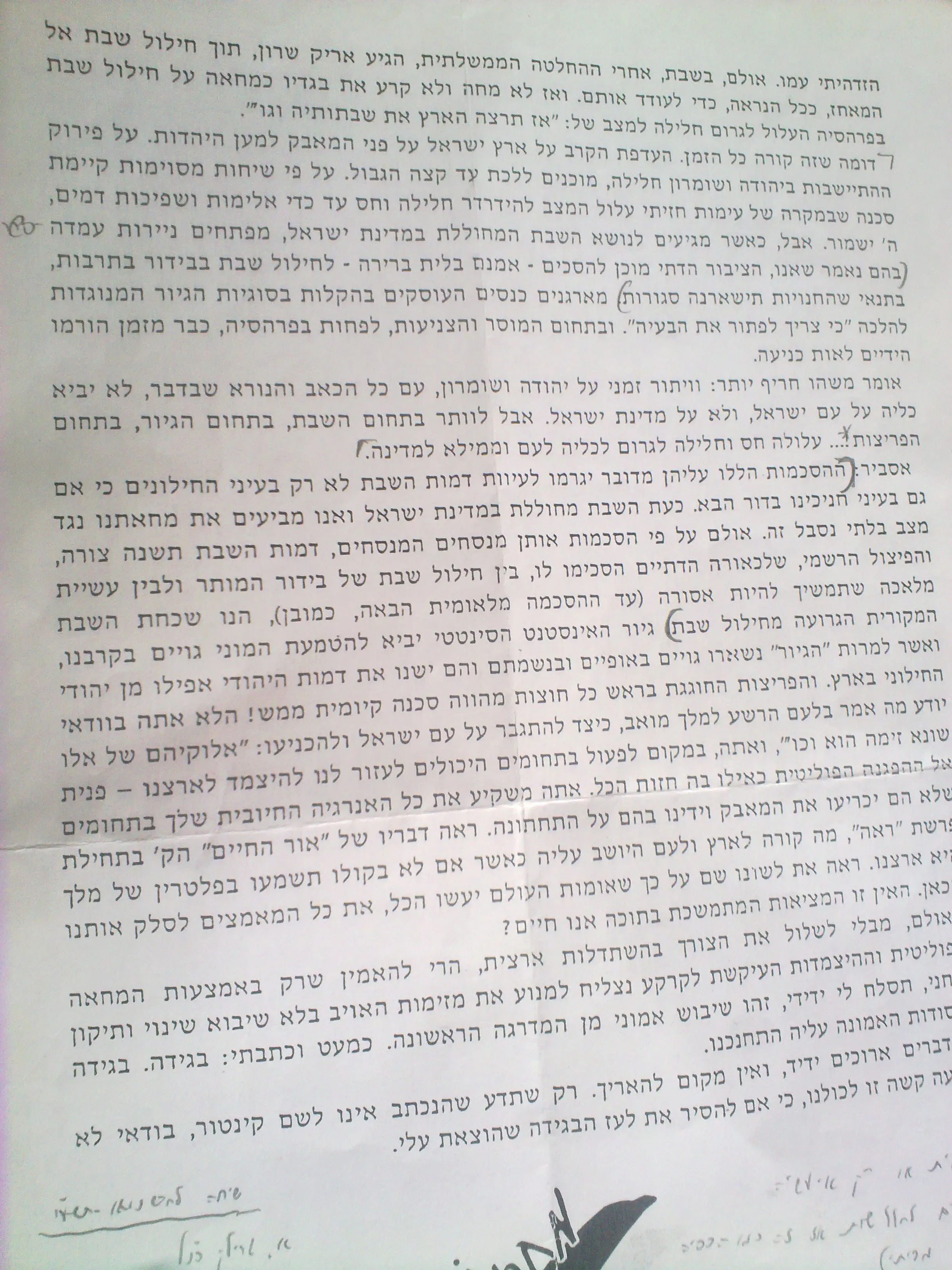 ב' התחלתי לקרוא ובאמת כמו שטוענים,מדוע הוא מפריד בין ארץ ישראל לתורה? כאילו ארץ ישראל זה ערך חשוב,אבל לא כמו חלילה אף מצווה אחרת,והוא בא בטענות שכביכול מצוות אחרות נפגעות בגלל ארץ ישראל,אבל צריך ללמד אותו,שארץ ישראל לא באה על חשבון התורה, אלא מתוך התורה,וזה קיום התורה,האו הזכיר את האור החיים על ראה,אז הספרי על ארה אומר שמצוות יישוב ארץ ישראל שקולה כנגד כל המצוות.זה לגבי ארץ ישראל.אך חוץ מזה,איפה אנו לא דואגים למצוות? לתורה? כשם שיש כנסים למען הארץ יש כנסים למען התורה (חיפוש פשוט יעלה את הכנס האחרון עם גדולי וזקני רבני הציונות הדתית) המפלגה הדתית לאומית,עומלת כל העת,למען התורה,למען הישיבות גם החרדיות,למען השמירה על כוחה של הרבנות הראשית (-שהיא שומרת על הסטטוס קוו,היא שומרת עלינו מהתבוללות,ואתם החרדים הייתם הראשונים לפגוע בה.) למען ארץ ישראל גם.כי שמירת שבת הייתה גם בגלות.וזה לא שמר על הארץ.הארץ הייתה שוממה.אך כשאנו בארץ,יש ערך גדול להחזיר בתשובה את עם ישראל,ועם ישראל יחזור בתשובה,אך חובה עלינו לשמור על כל אמה מארץ ישראל,לבל נעזבנה זולתנו בידי האומות (רמב"ן) לכן חרדי יקר,צא מהסטיגמות,המזרוחניקים הם לא רק ארץ ישראל,הם ארץ ישראל מתוך התורה כמו כל המצוות,במיוחד בזו שזכינו לה בזמננו בדורנו הגדול,דור הגאולה.בו הארץ נותנת פריה בעין יפה וזהו הקץ המגולה הכי גדול שיש.
