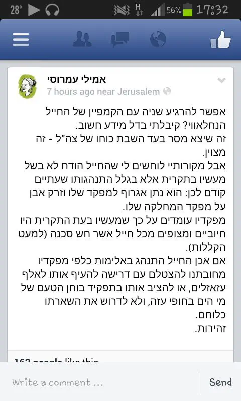 במקביל, אני נגד תקיפות של מפקדי צה"ל, והיה ואם החייל באמת תקף את מפקדיו בזמן כלשהו, לפני או אחרי האירוע - הרי שלדעתי הוא צריך לעמוד לדין על כך, ולשלם מחיר.