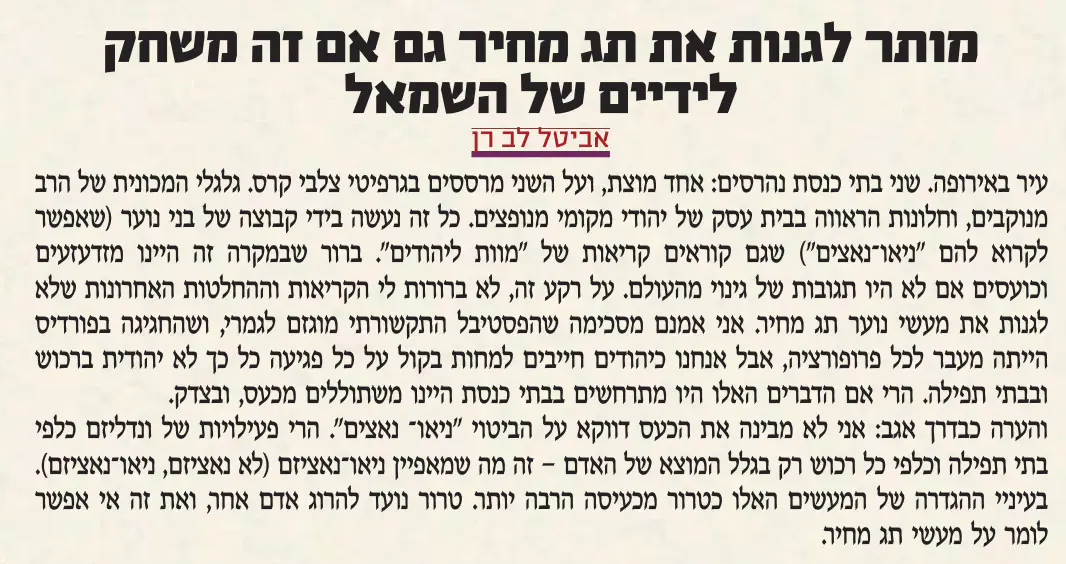 תגובה למאמר "מותר לגנות את תג מחיר גם אם זה משחק לידיים של השמאל".