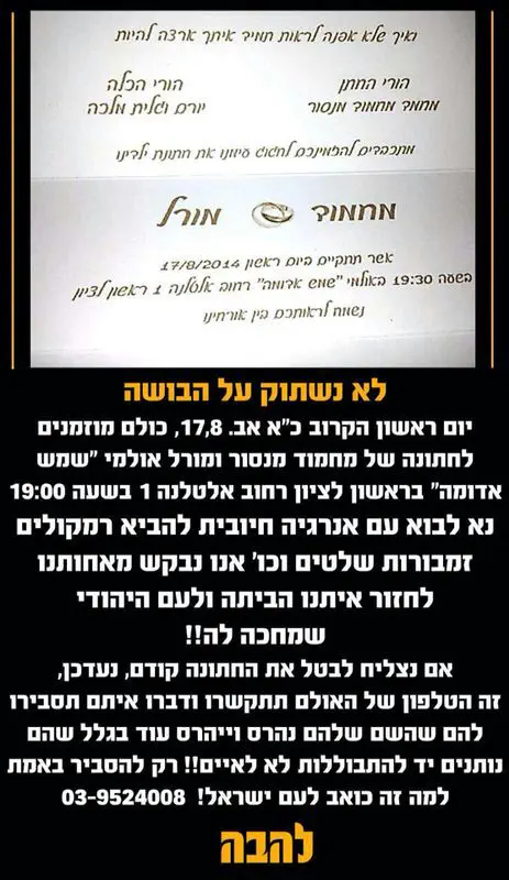 ביום ראשון הולכת להיות הפגנה בראשון לציון ליד אולם החתונות"שמש אדומה" ברחוב אלטנה 1 כדי למנוע התבוללות!!!