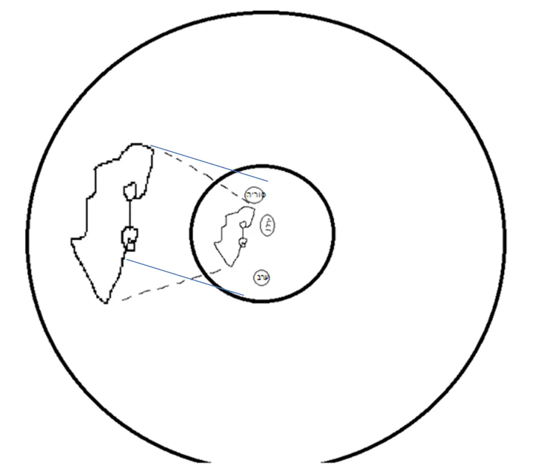 נניח שהירוק הוא א"י, אז השטח שבתוך הקוים המקווקוים שמשני צדדיו,