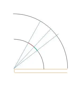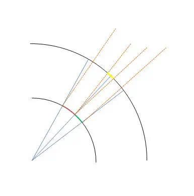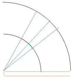 אבל השטח הזה עצמו גדול יותר. (כלומר - מבחינה קווית!! מבחינה זוויתית ומבחינת ה'אחוזים מתוך השטח' הוא באותו גודל בדיוק.)