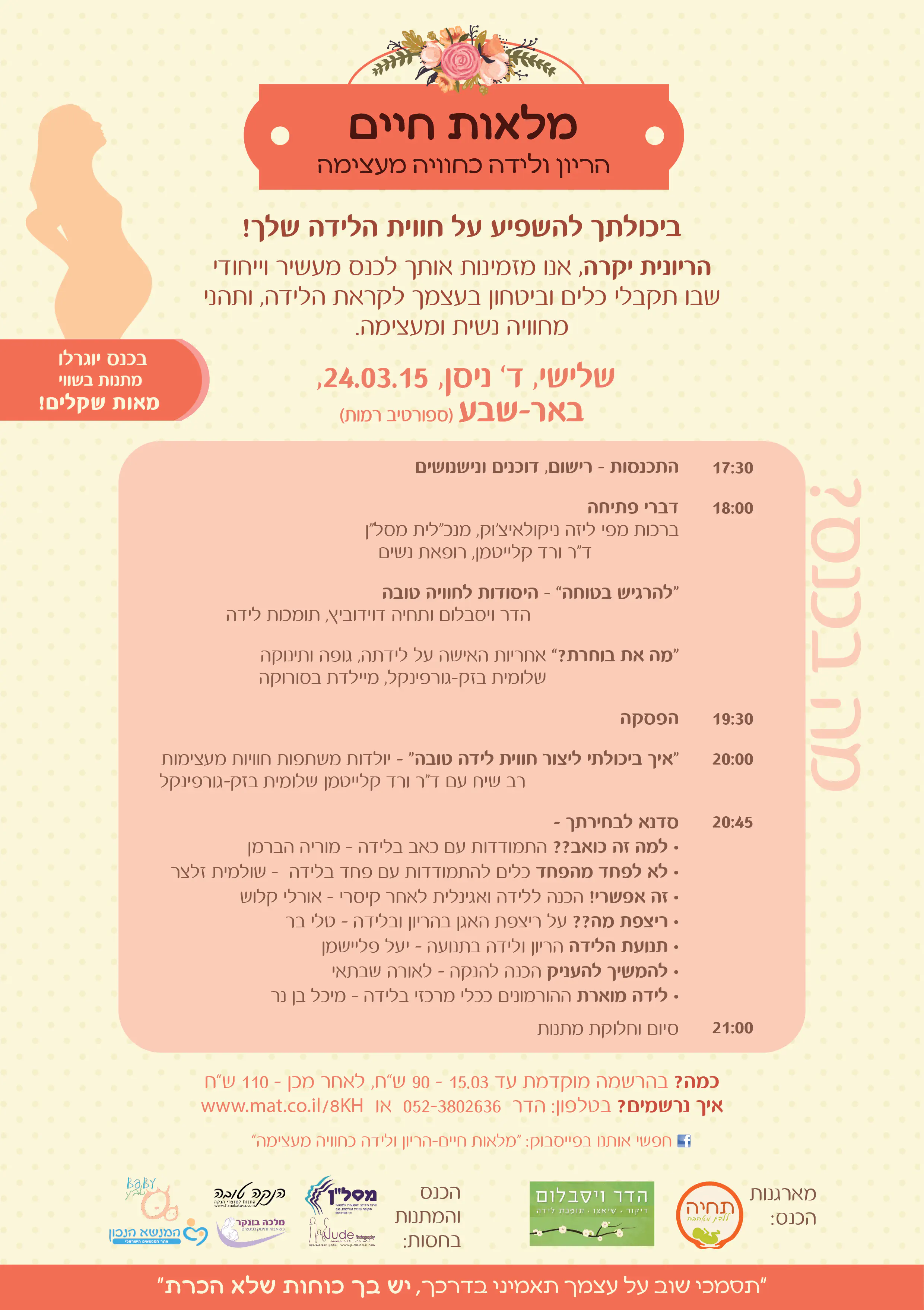 משתפת גם בכנס לנשים בהריון בבאר שבע שאני ועוד דולה מארגנות, זה יהיה בד' ניסן, 24/3.