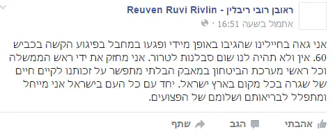 נשיא המדינה שולח תנחומים למשפחתו ומביע צער על אי הזהירות של החיילים
