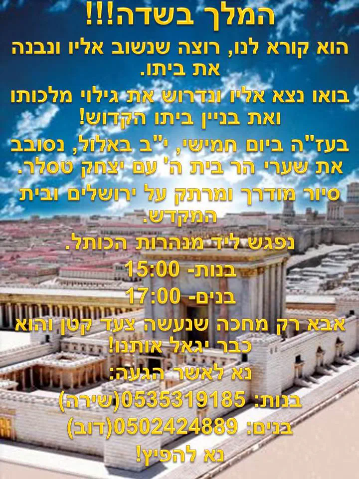 בואו נצא אליו ונדרוש את גילוי מלכותו ואת בניין ביתו הקדוש!!