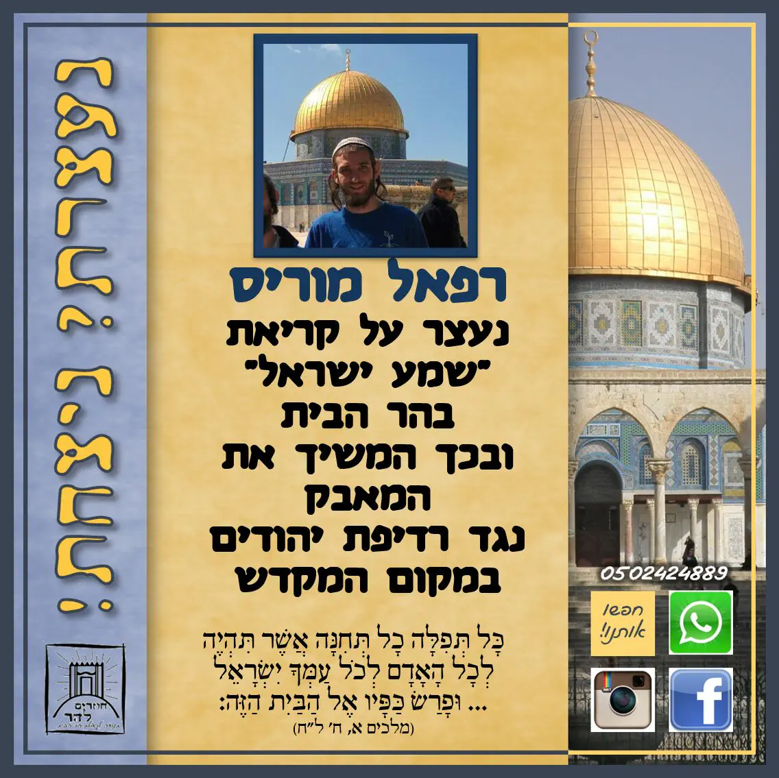אנו בתנועת חוזרים להר קוראים לכל עם ישראל לעלות להר ולהתפלל ולא להירתע ממעצר.