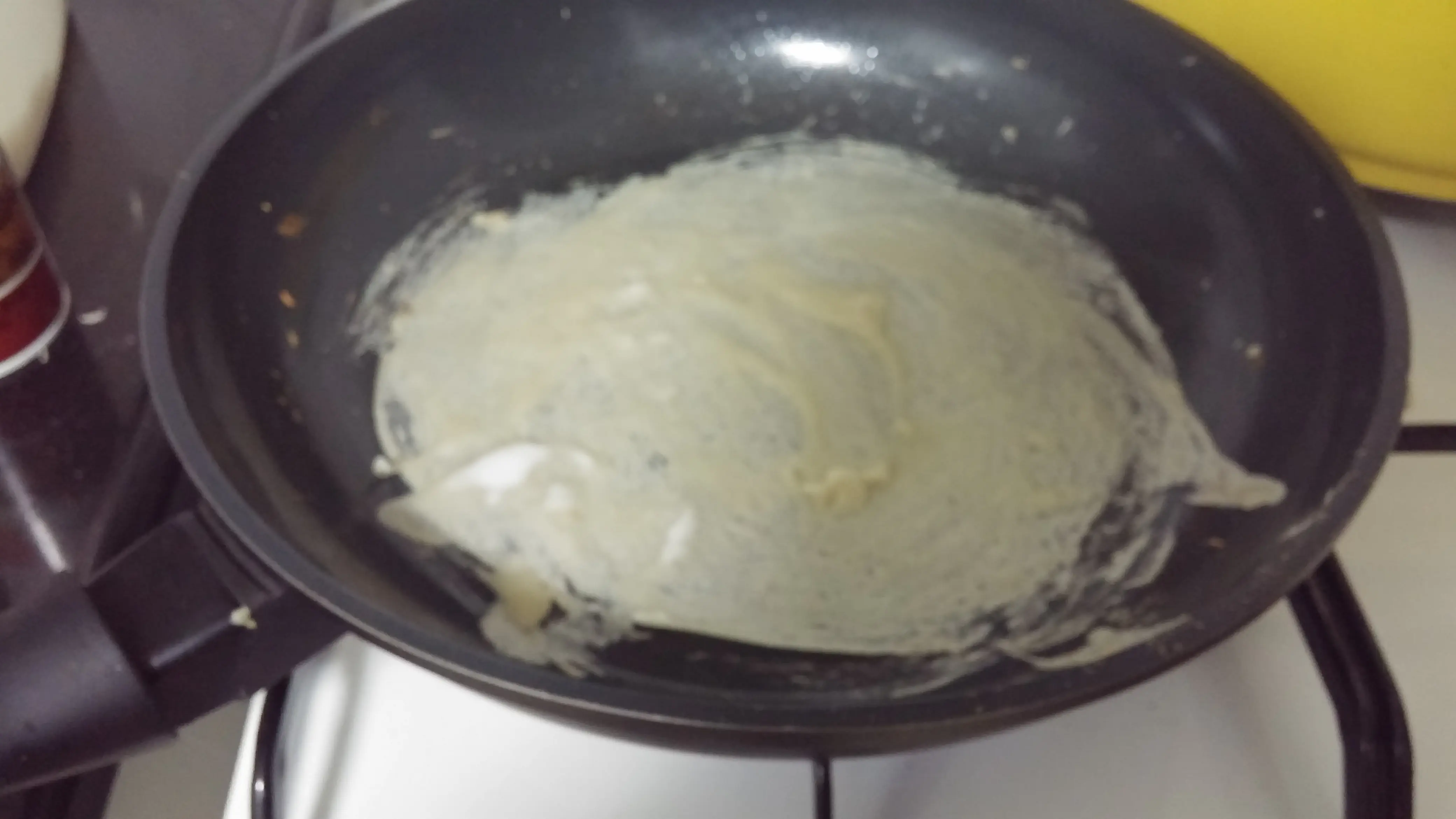 מורחים בעזרת מברשת שכבה דקה של הבצק על המחבת ואופים במשך מספר שניות.