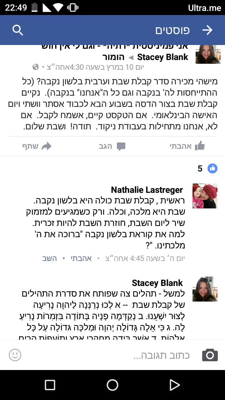 אני חושבת שפמיניסטיות דתיות הן לא שונות ברמה הדתית מכל אחד אחר, אלא אם כן, הם מכופפות את ההלכה לרצונן האישי.