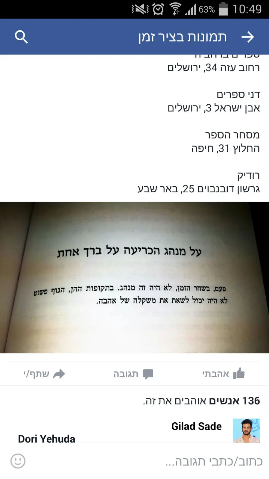 הייזלחפשי אותו בפייסבוק, מופיעים שם גם שמות הספרים.
