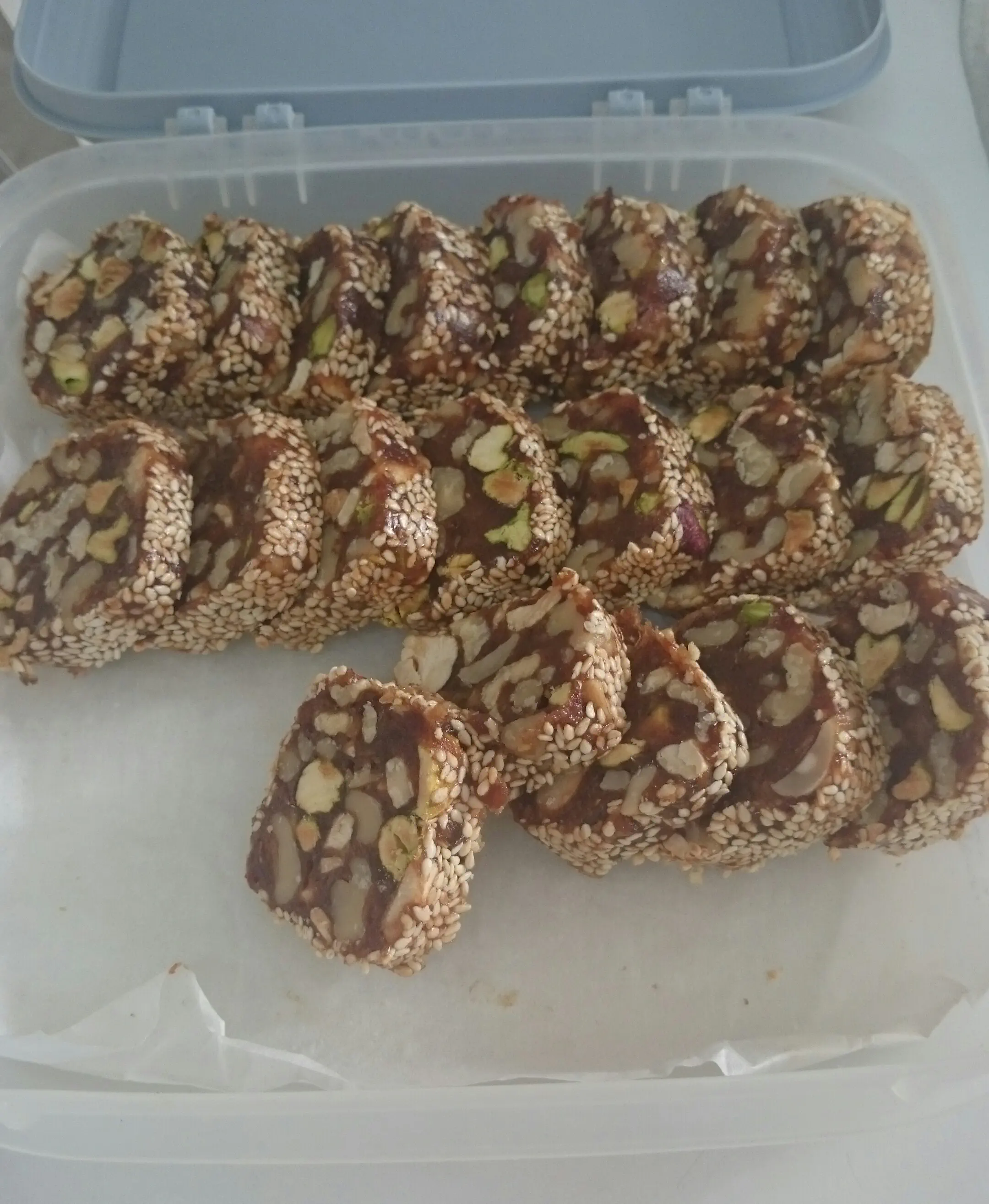 כשקר לחתוך. יוצא יאמי! זה מין טופי שוקולד-אגוזים.
