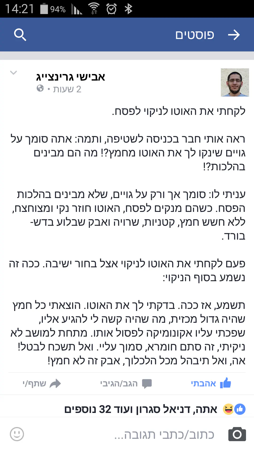 הוא מנקה מה שצריך מבחינה הלכתית.