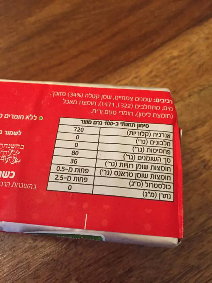מכיר על יחס בין שמן רגיל (לא זית) למרגרינהארץ השוקולד