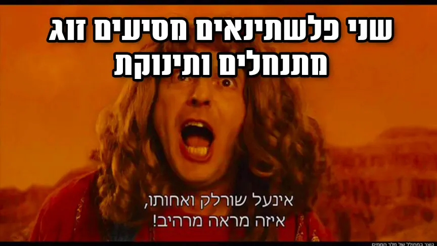 מגיעים זוג מתנחלים, האשה עם תינוקת בידיים ושני פלשתינאים מסיעים אותה'...