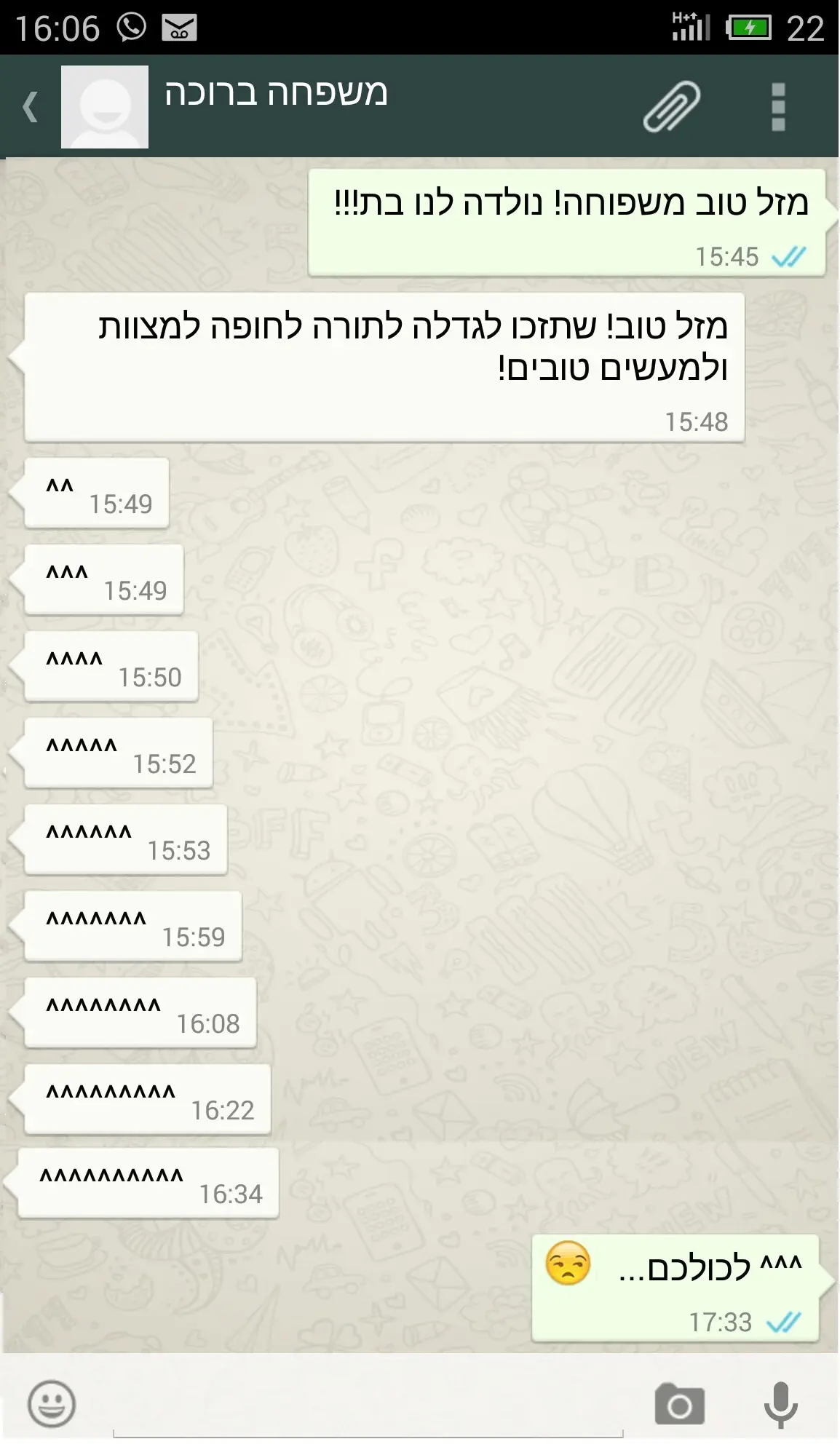 (כנ"ל בקבוצה של השכונה- זה קבוצה להודעות! הודיעו שנולד לשכנים בן? תמסרו להם מזלט באישי!!)