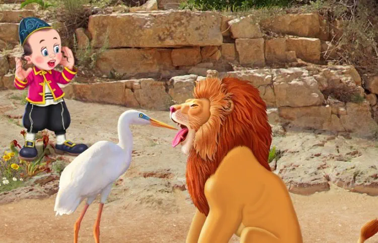 "הַקְשִׁיבוּ, הַקְשִׁיבוּ!" קָרָא הָאַרְיֵה בְּקוֹל חָנוּק אֶל בַּעֲלֵי הַחַיִּים, "מִי שֶׁיַּצְלִיחַ לְהוֹצִיא אֶת הָעֶצֶם מֵהַגָּרוֹן שֶׁלִּי, יְקַבֵּל פְּרָס גָּדוֹל!"