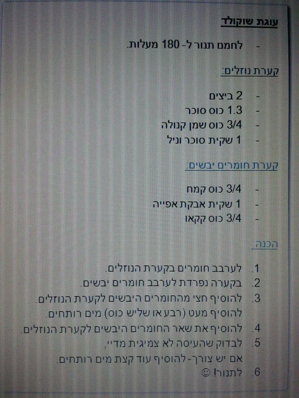 להכניס לתנור ל 180 מעלות