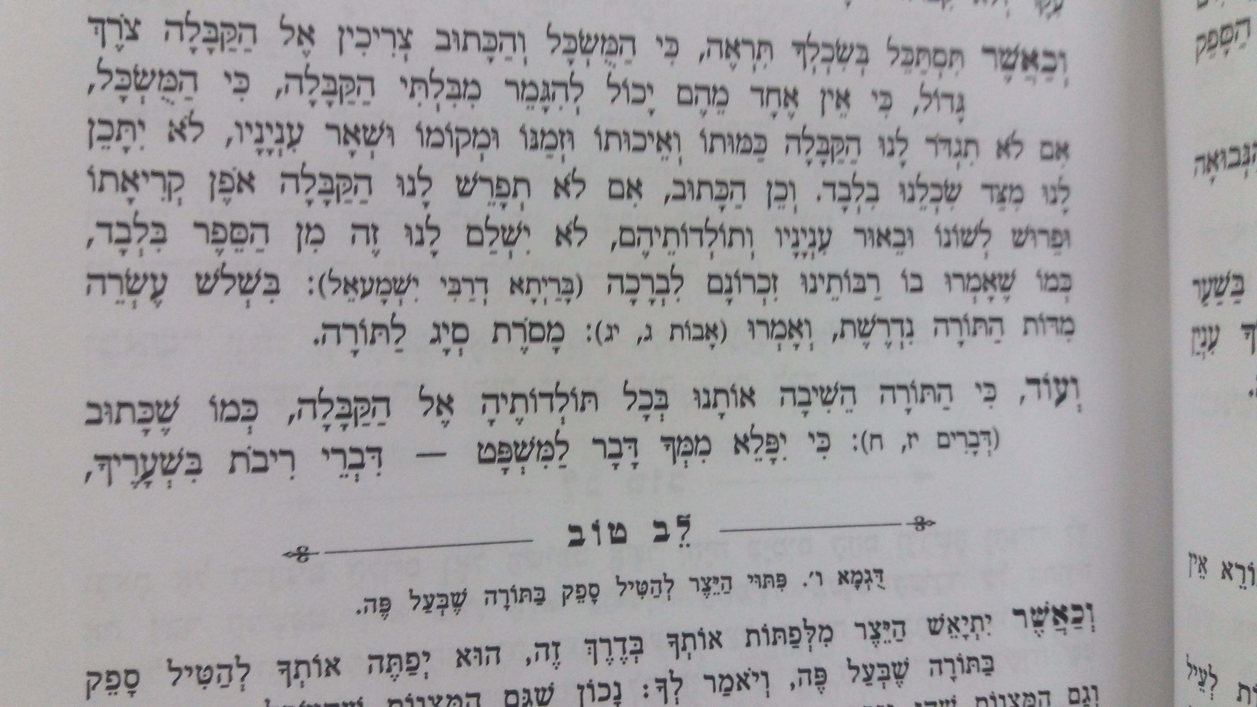 באחד הדפים שהבאת הרמב"ם מדבר על התקופה של אבדן החכמה, שבה צריך שלא לסור מדברי חכמים שאז (בתקופה זו) "אין לו לקב"ה בעולמו אלא ארבע אמות של הלכה". לא קשור לנושא שלנו.