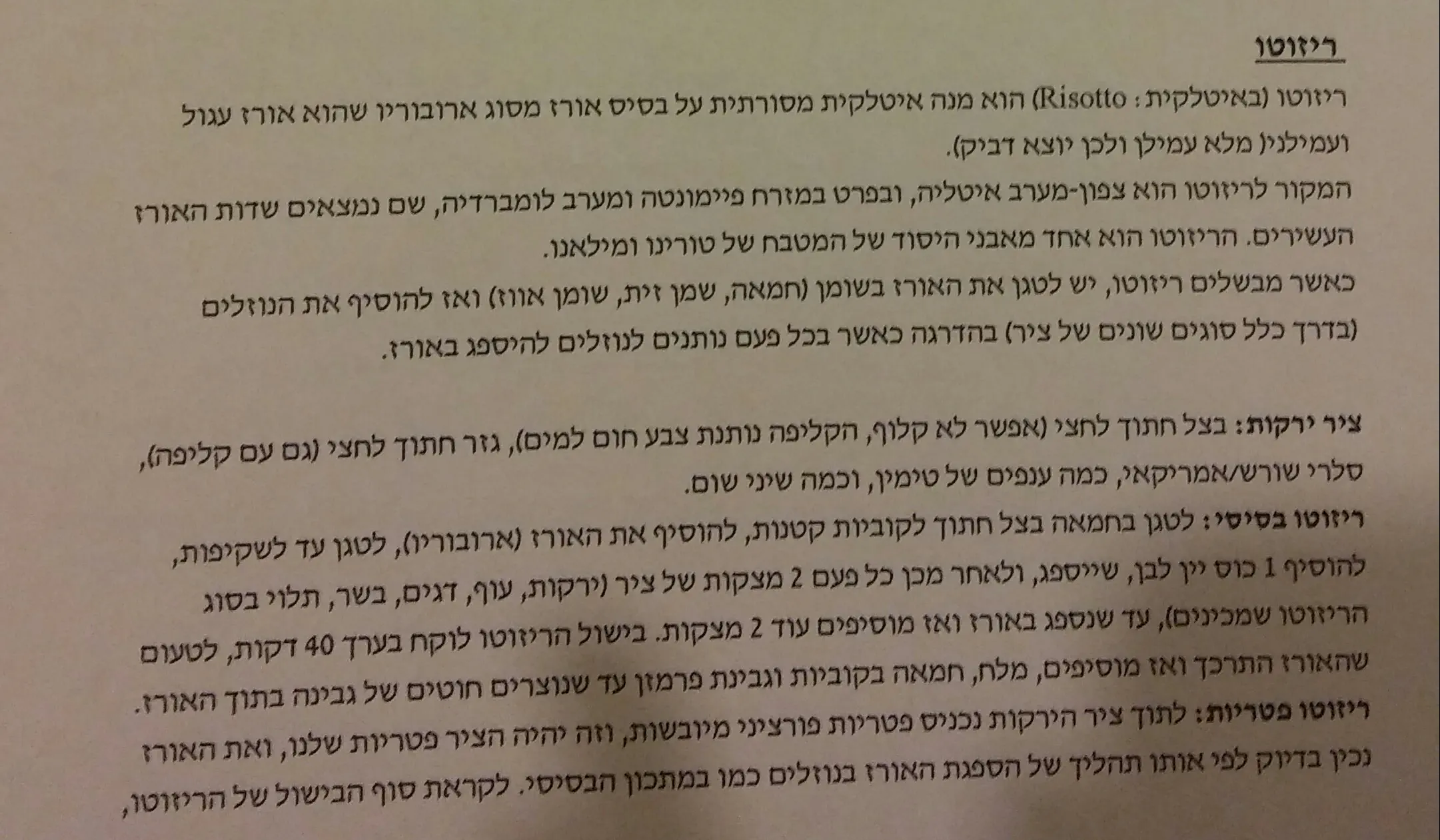 בגזרת האוכל המבושל - קטניות ותפו"א...