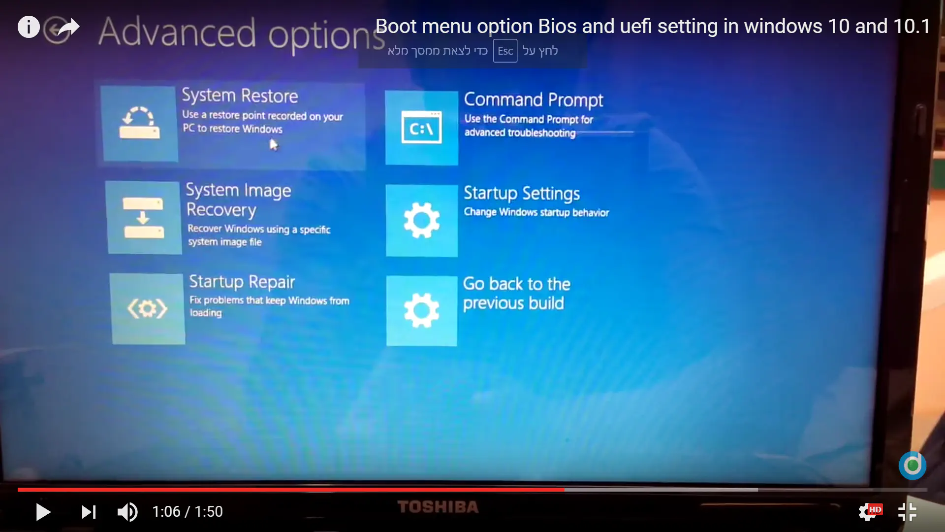 הוא יציע לך לעשות ריסטרט. אחרי הריסטרט תגיע ל-bios.